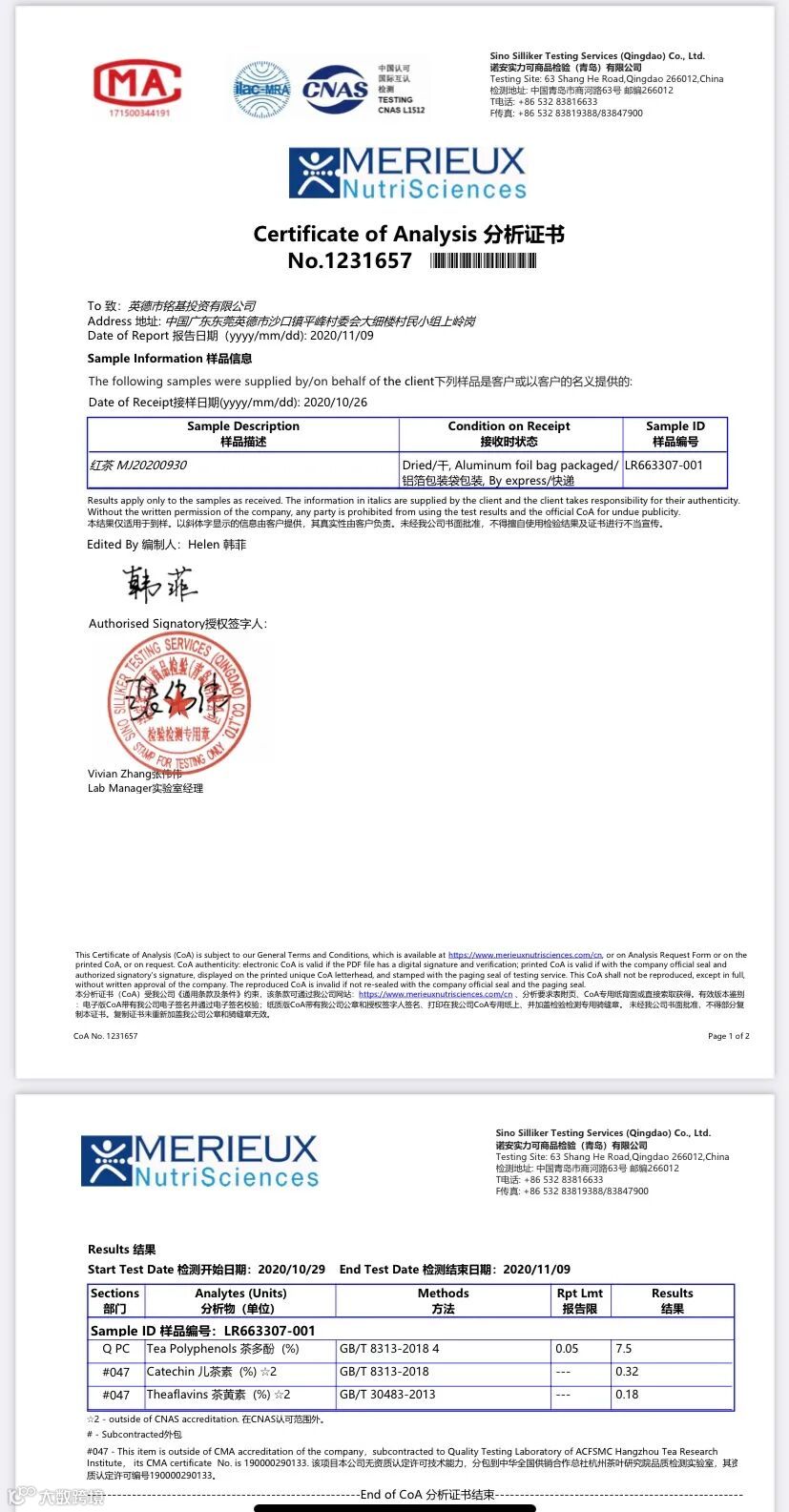 粤德红有机红茶,经权威机构认证,茶多酚、儿茶素、茶黄素等物质含量丰富——
