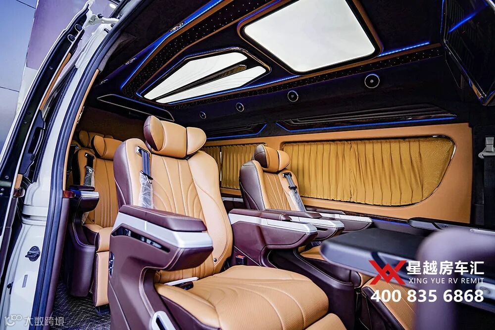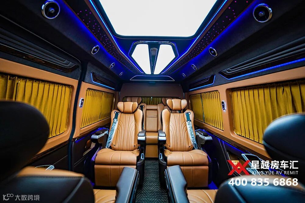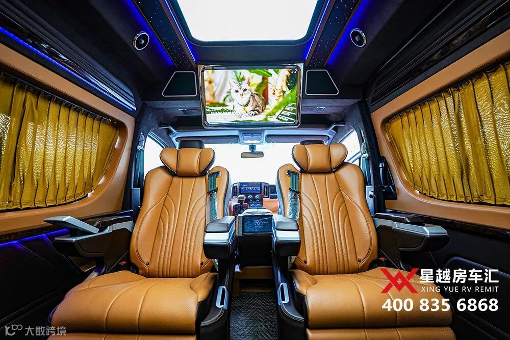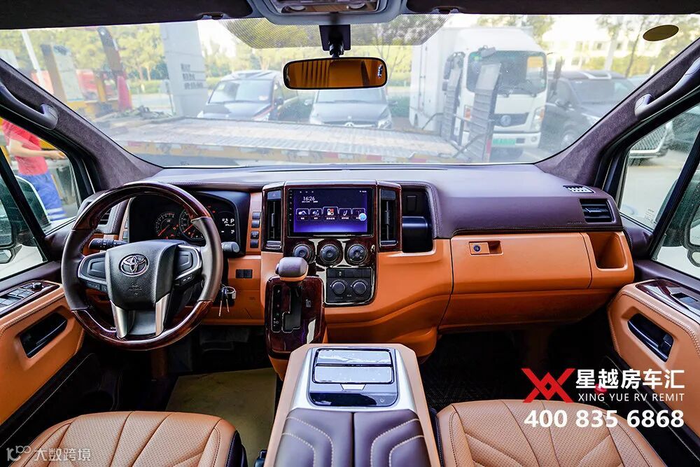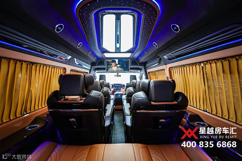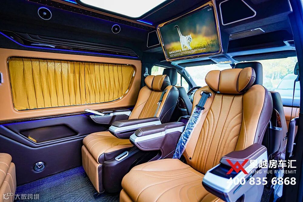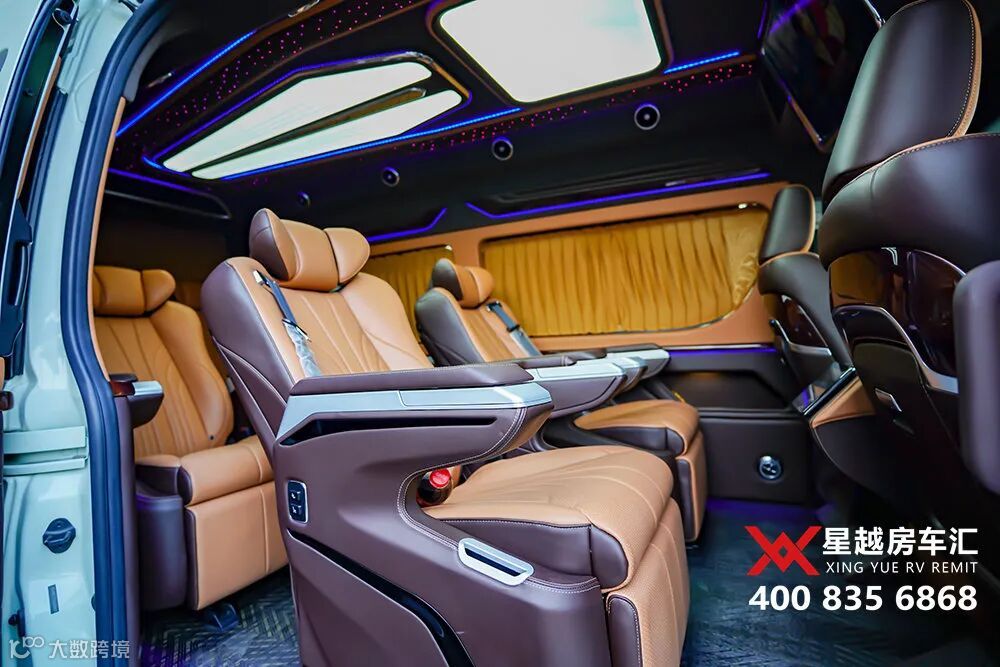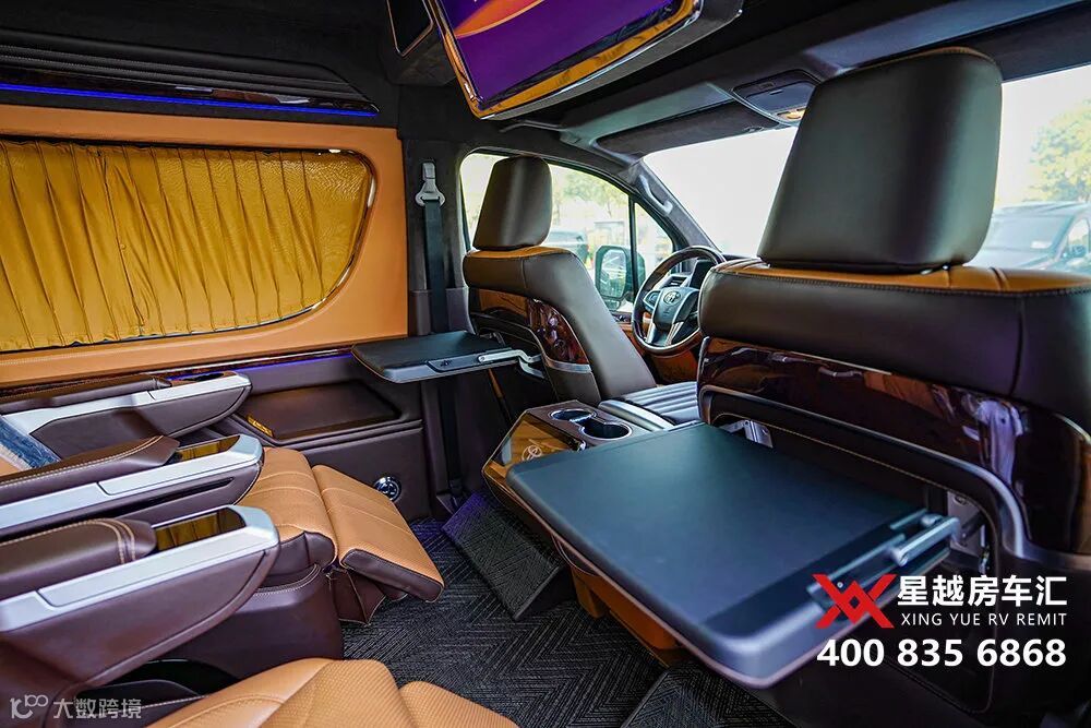 今天,带大家来看一款全新定制的丰田海狮9座商务车,4个埃尔法座椅,棕黄内饰,搭配星空氛围灯,很有质感。