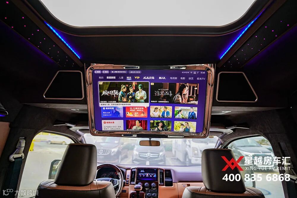 一家人出游,娱乐性也必不可少。驾驶舱后上方25寸吸顶娱乐电视,下方座椅靠背是航空桌板,看电视综艺,桌上放点瓜子零食,惬意。