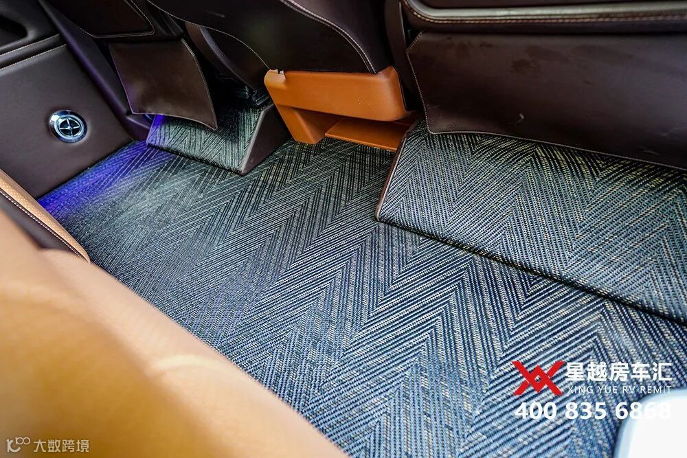 脚踩编织地毯,顶棚加装十几个空调出风口,冬暖夏凉,坐在后舱很舒服。加装窗帘,私密性也得到保障。
