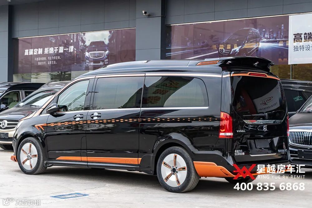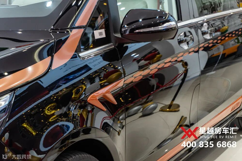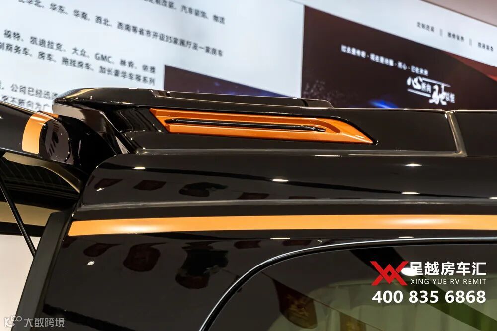 橙色线条与黑色的撞色搭配,动感十足。车身长宽高为:5420×1928×2060mm,3430mm的轴距,内部空间相当宽敞。