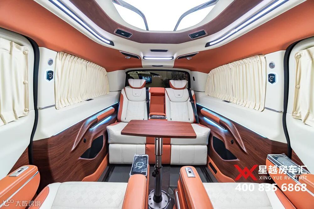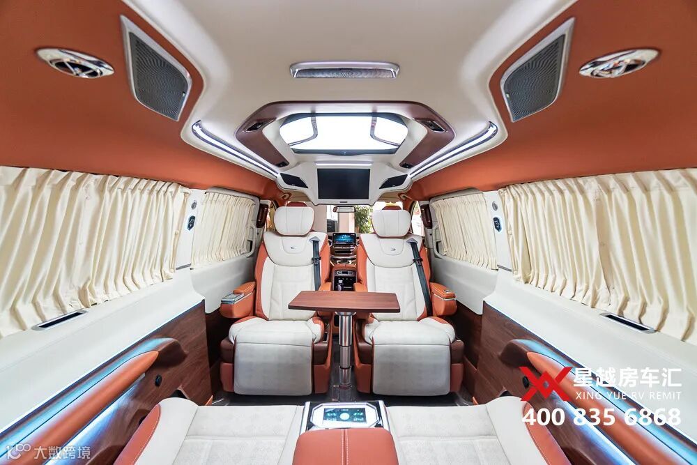 大白鲨全车豪华游艇级内部装饰,但采用的都是环保材料,健康无异味。隔热深色隐私玻璃,设计对开丝绒窗帘,舱内的私密性也很好。