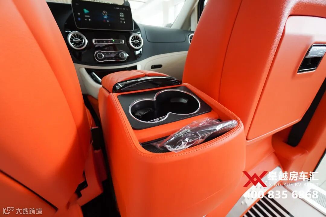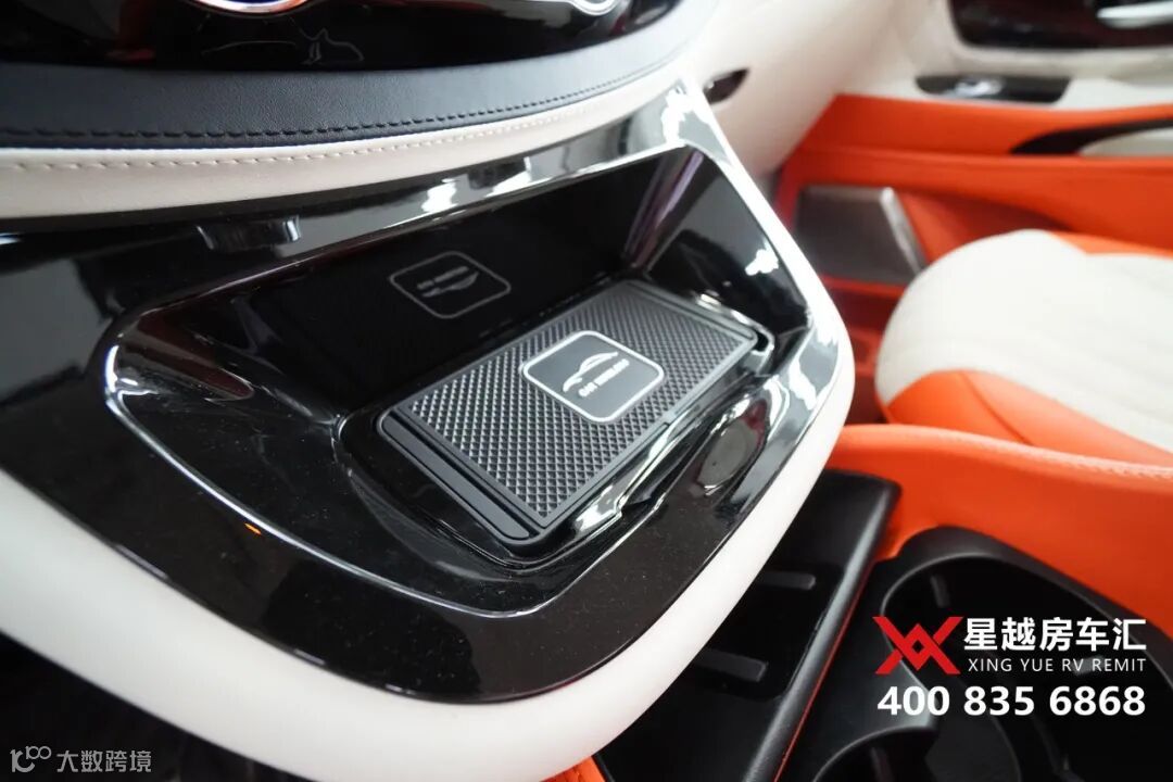 全新橙白色系的驾驶舱,多功能方向盘升级真皮+木质拼接,升级悬浮式液显示屏,无线充电装置,以及扶手处的车载冰箱,都是一些使用率比较高的配置。
