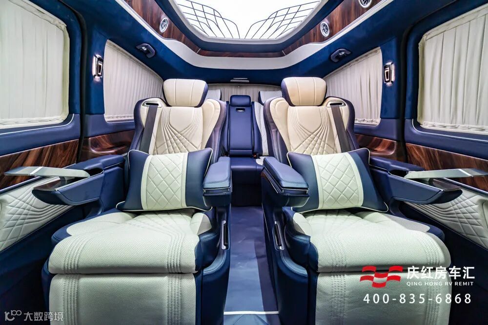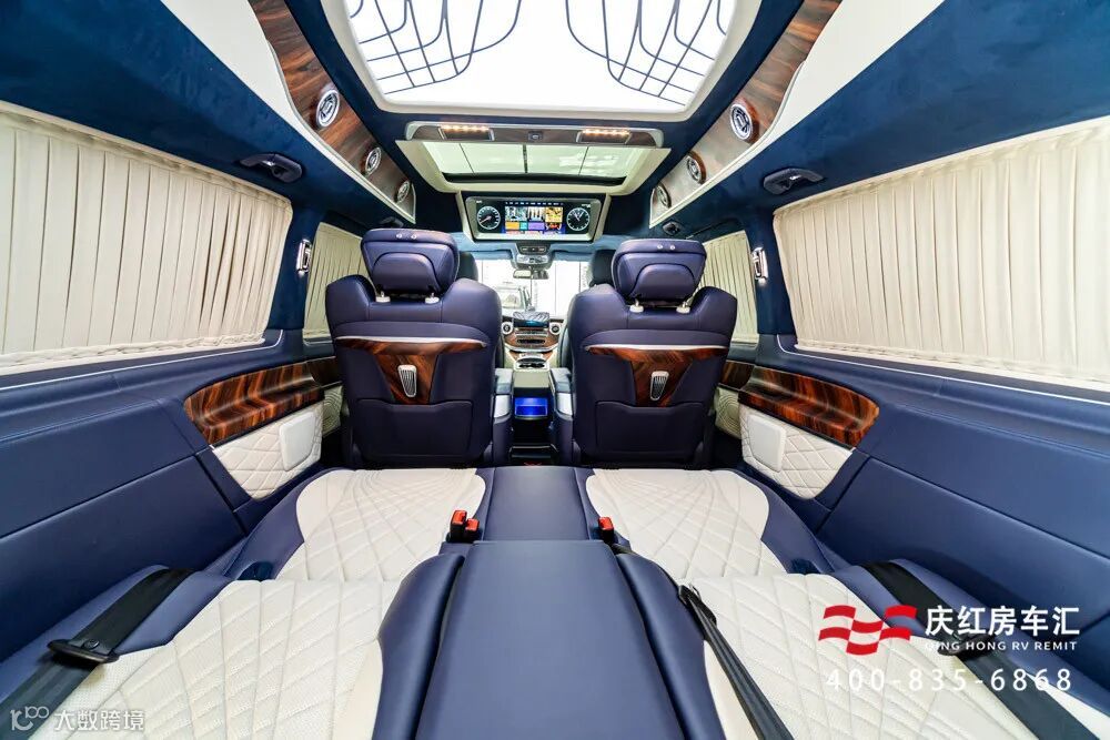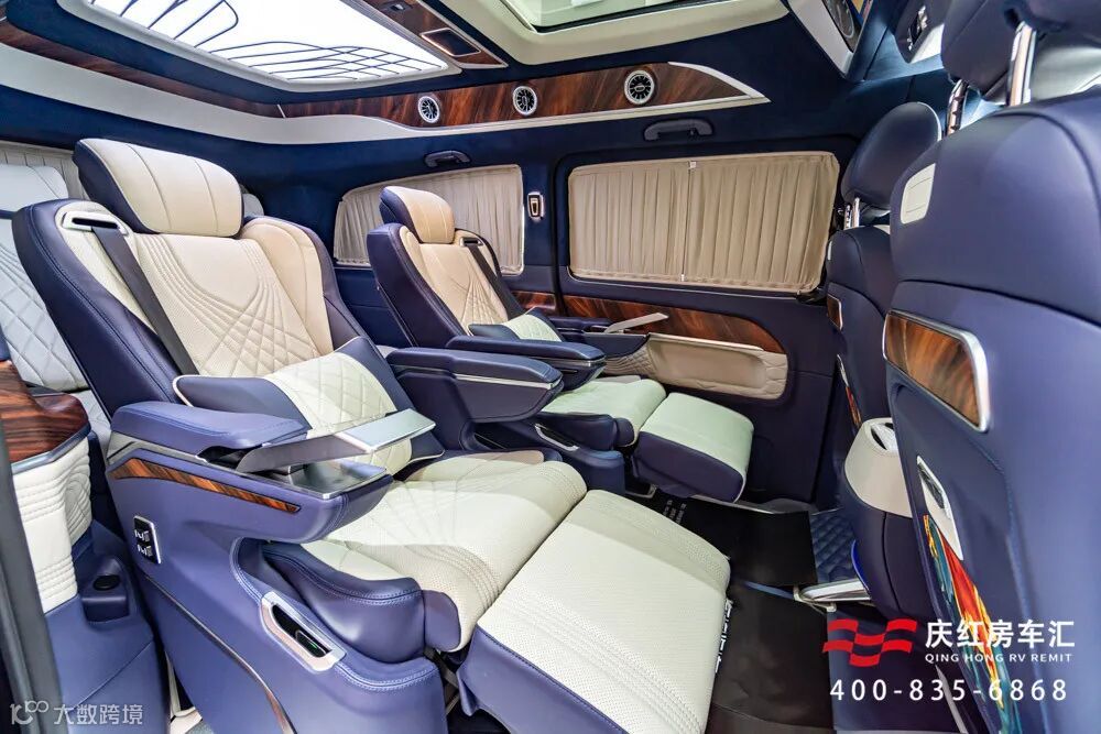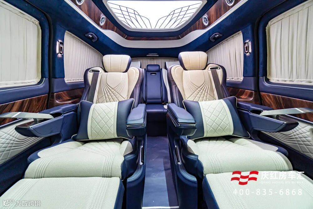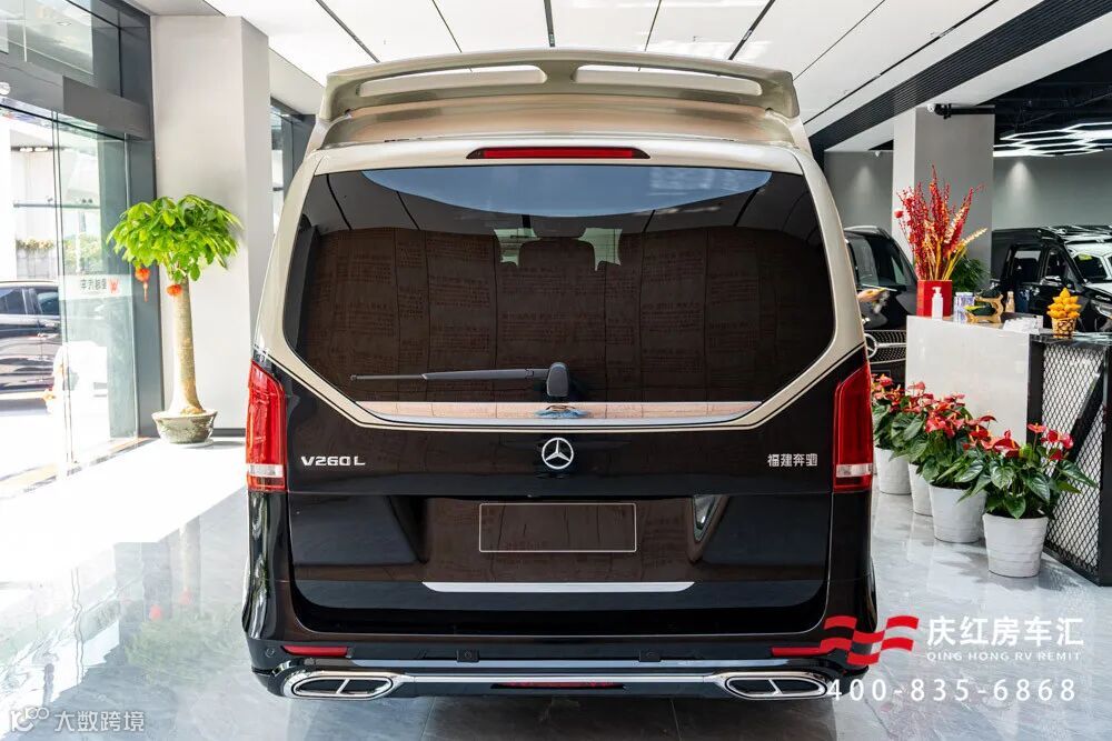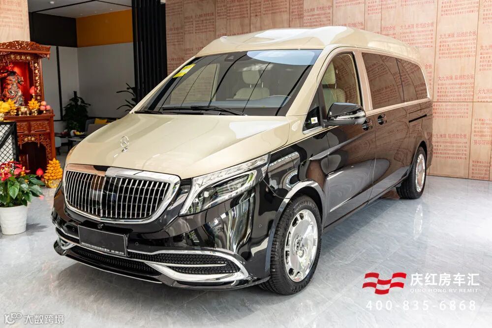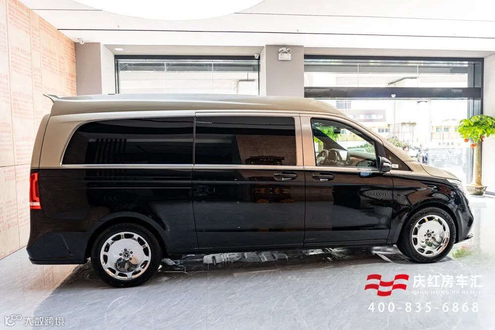今天给大家介绍一款全新到店的高级定制奔驰V级,双拼色7座,带奔驰小立标,金色与黑色的拼接,奢华又独特。匠心打造的豪华内饰,堪比飞机头等舱!