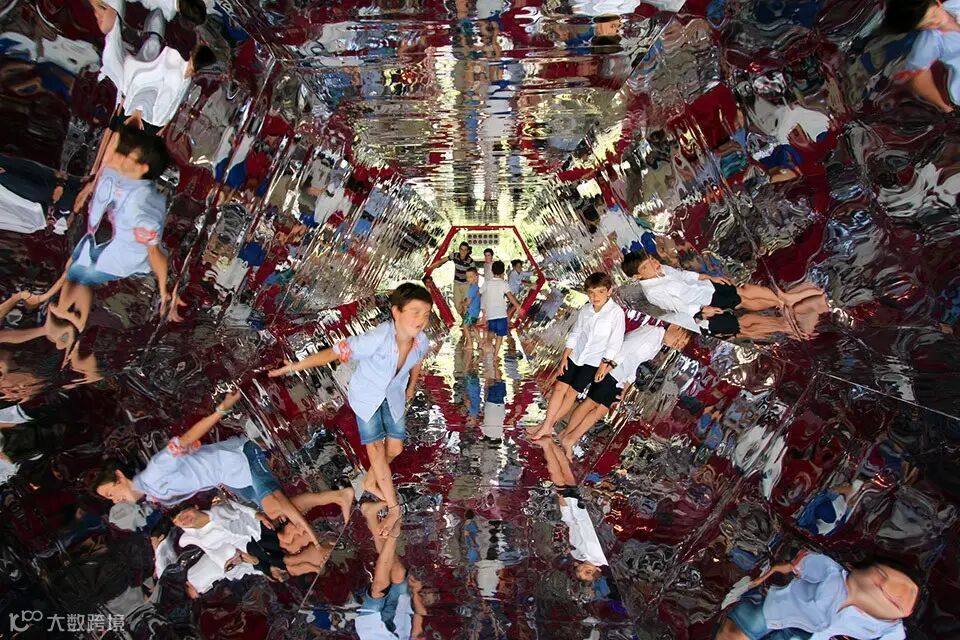 空间核心是长9米,高2米的万花筒,这个筒是孩子们在内部各空间中穿行的必须空间,这里360度包裹上反射材质,其中风景则因为光,窗外风景,还有孩子们的穿着和位置而呈现出无数种可能性。