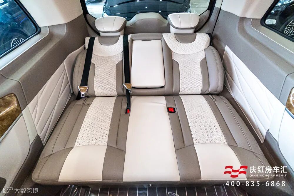 三排超大沙发床座椅电动调节,带隐藏中央扶手和收纳箱,座椅的包覆性很好,不管是坐下来还是躺下来休息,都非常贴合人体曲线,长途出行也不容易累。