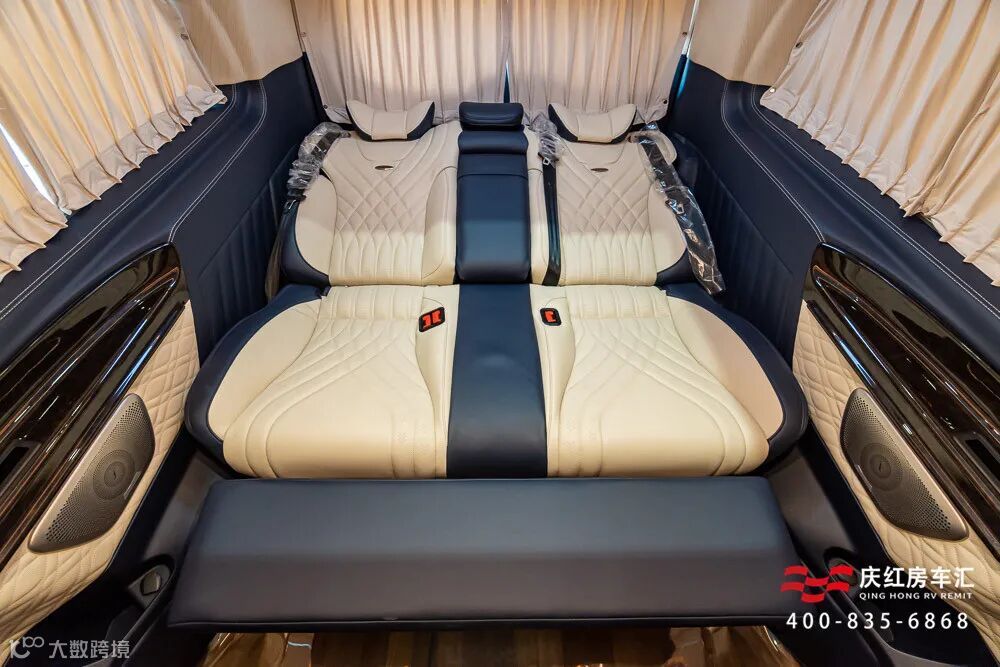 脚踏、阅读灯、液晶电视、柏林之声音响系统、车尾处空气净化器、全车隐私窗帘等细节装饰升级,让此款奔驰威霆MPV表现得更为人性化、更为体贴细致。