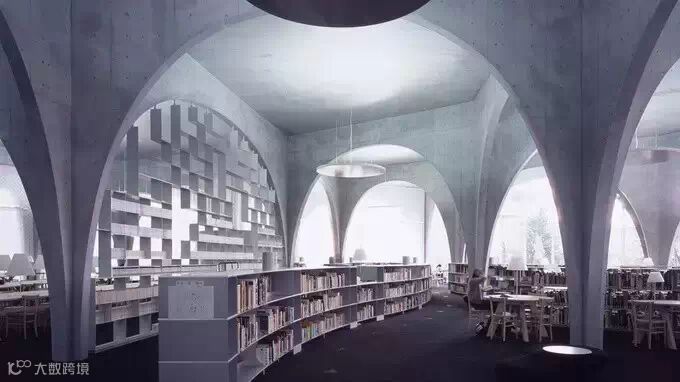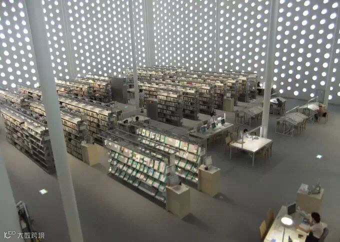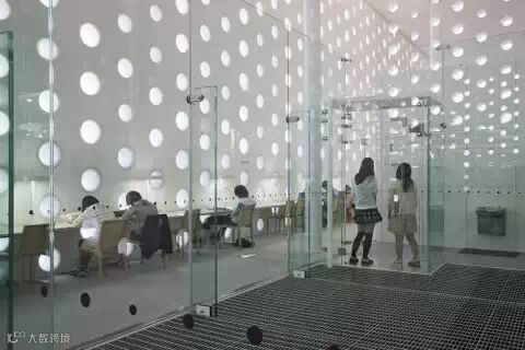 图书馆的墙面上全是圆形的小窗,阳光投进窗孔,给室内灌进了无数的“透明感”。