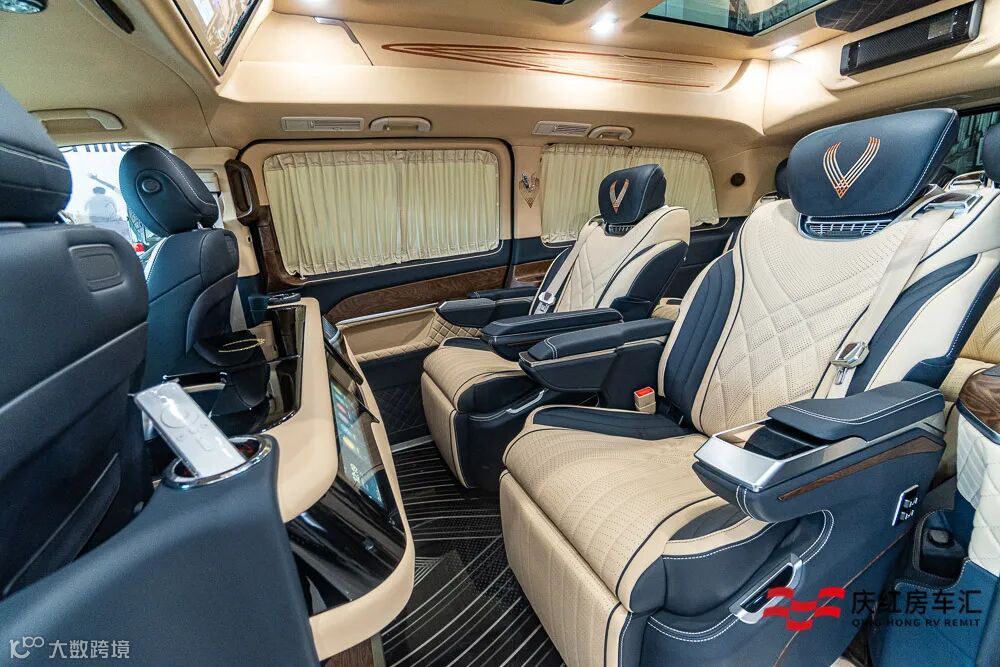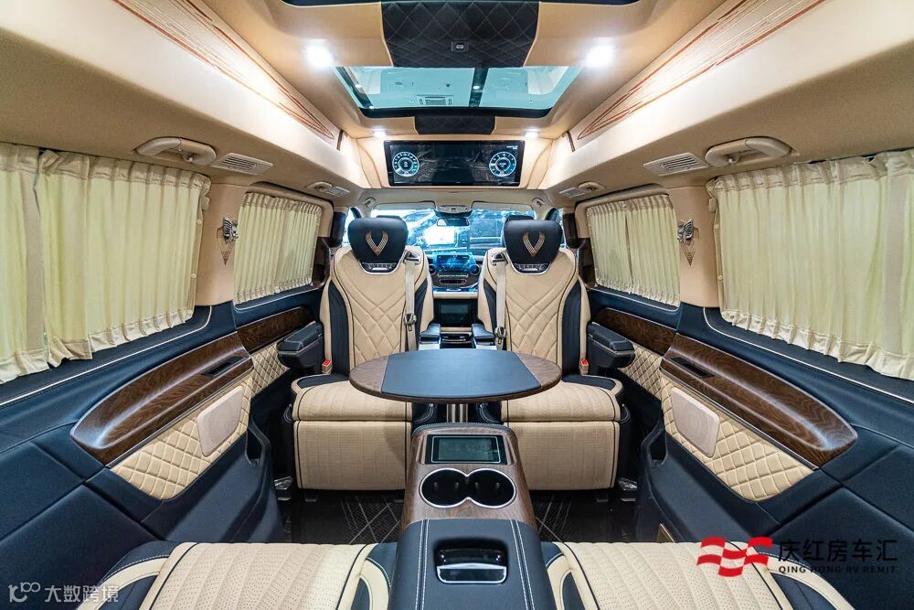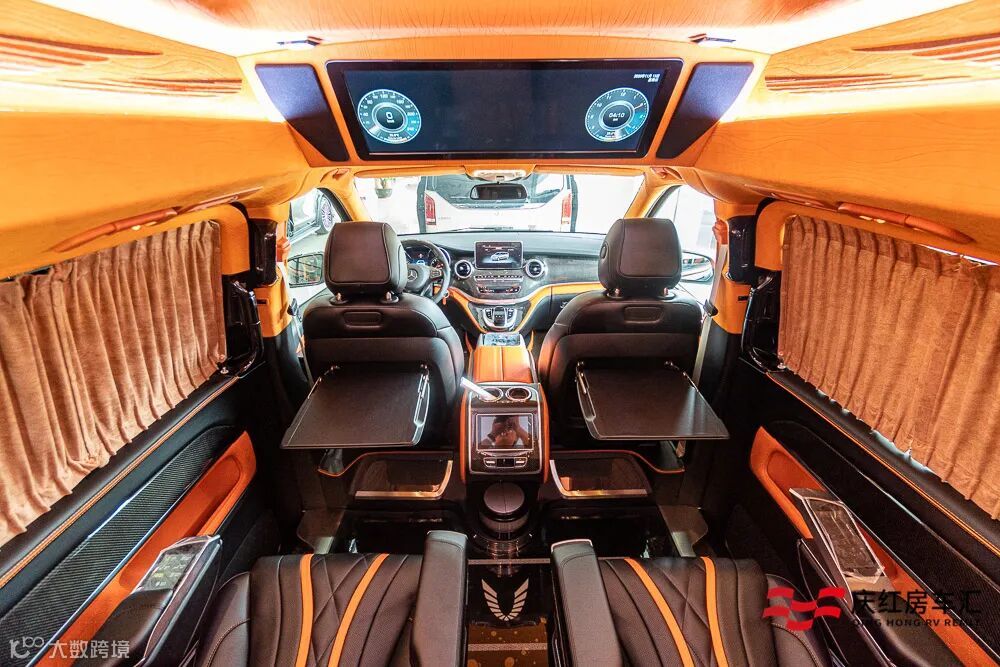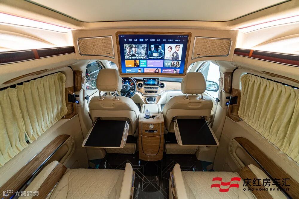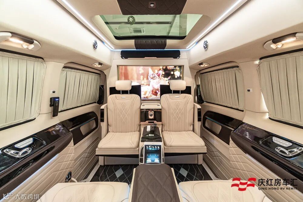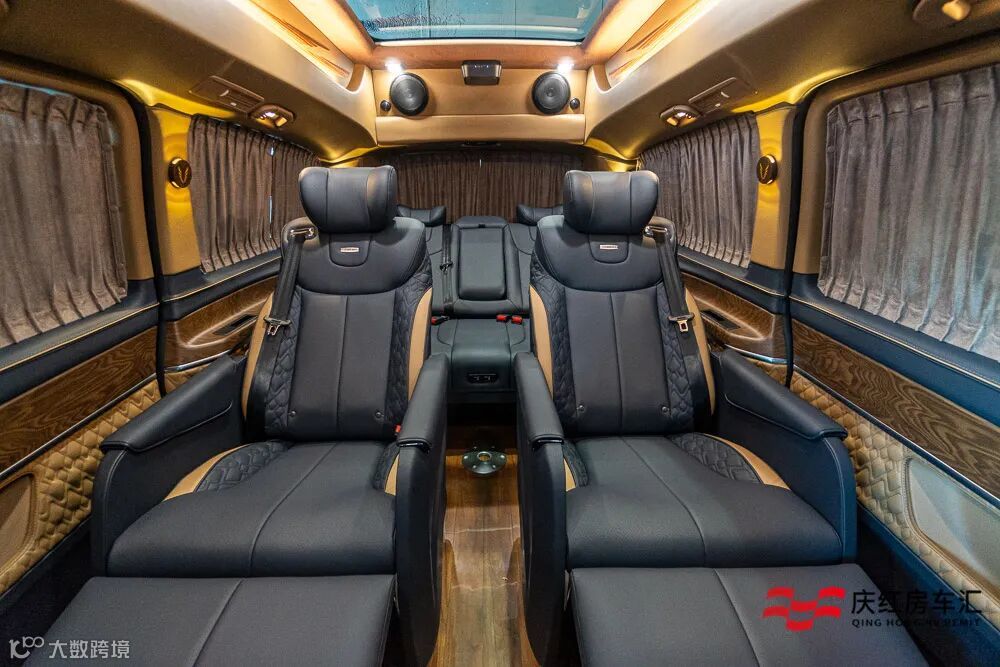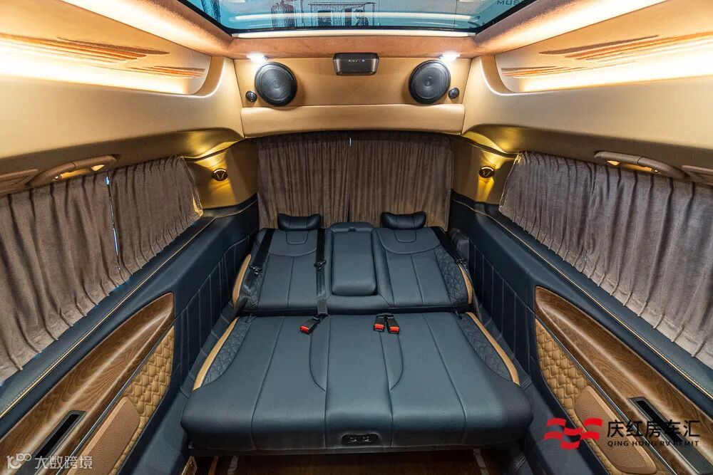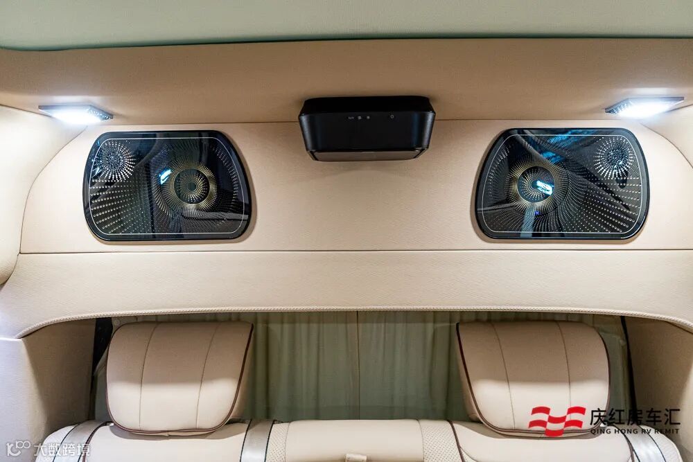 同样以2020款V级威原型车升级打造,全隔断7座,私密性相当不错。多了隔断的设计,娱乐性跟配置都可以很丰富,在隔音降噪处理的商务舱内,视觉跟听觉效果都一级棒。