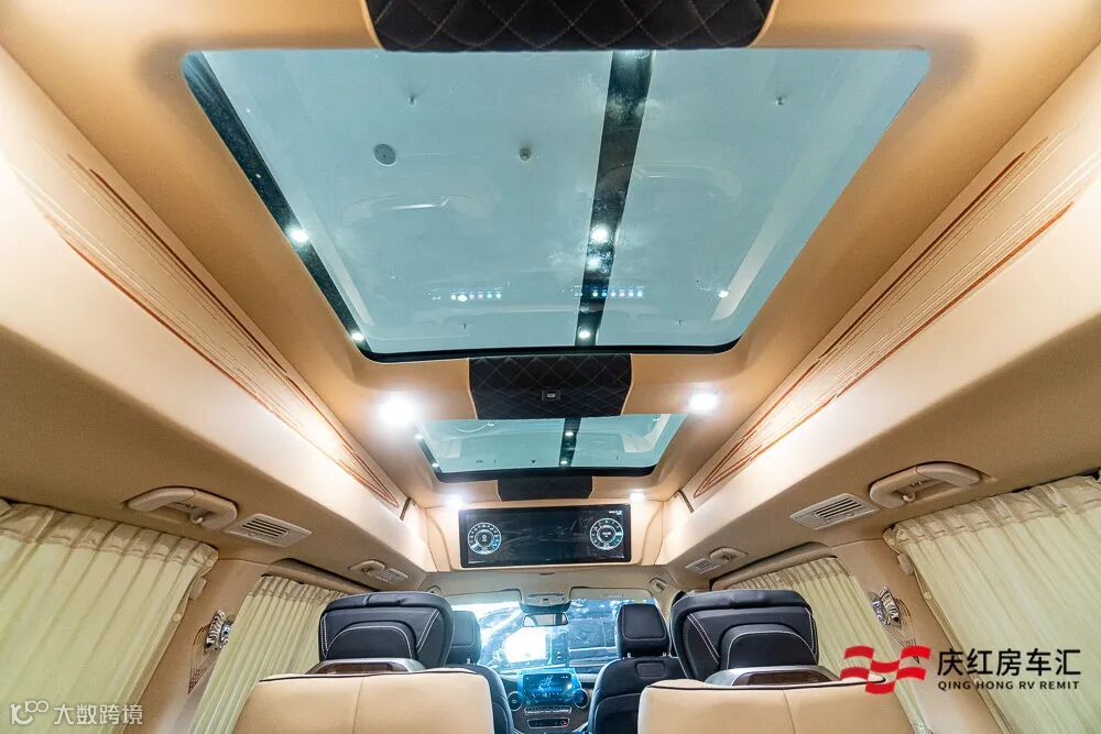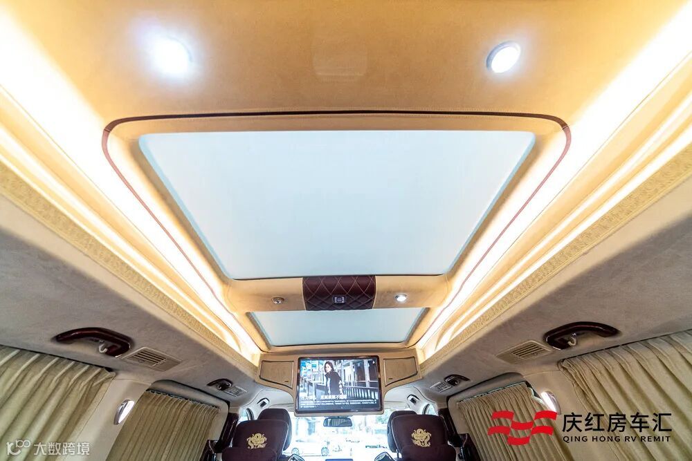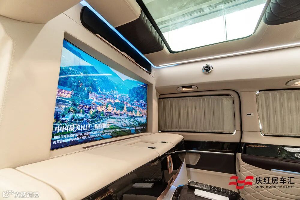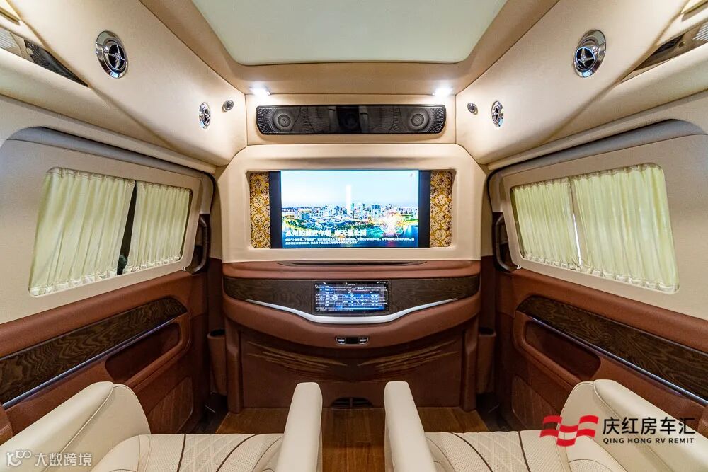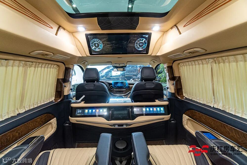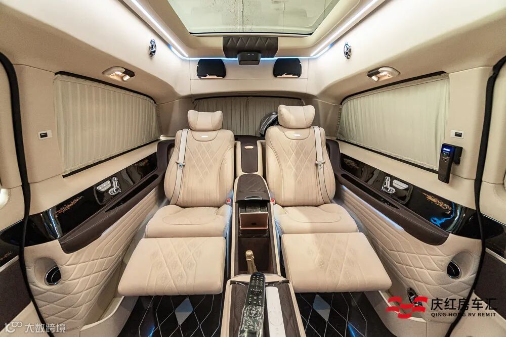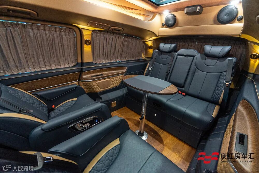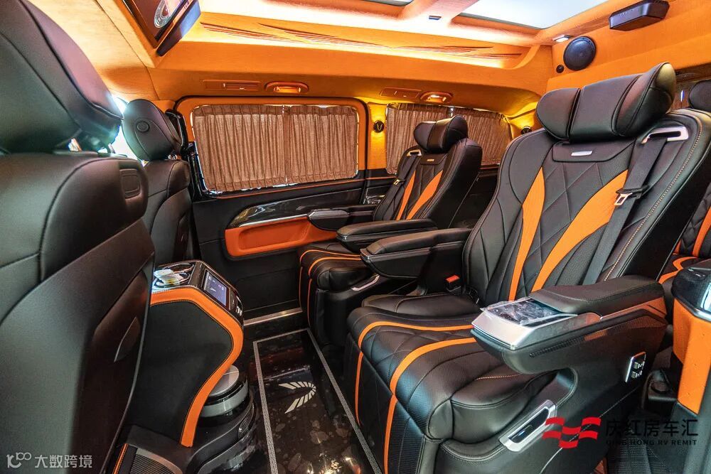 同样以2020款V级威原型车升级打造,全隔断7座,私密性相当不错。多了隔断的设计,娱乐性跟配置都可以很丰富,在隔音降噪处理的商务舱内,视觉跟听觉效果都一级棒。