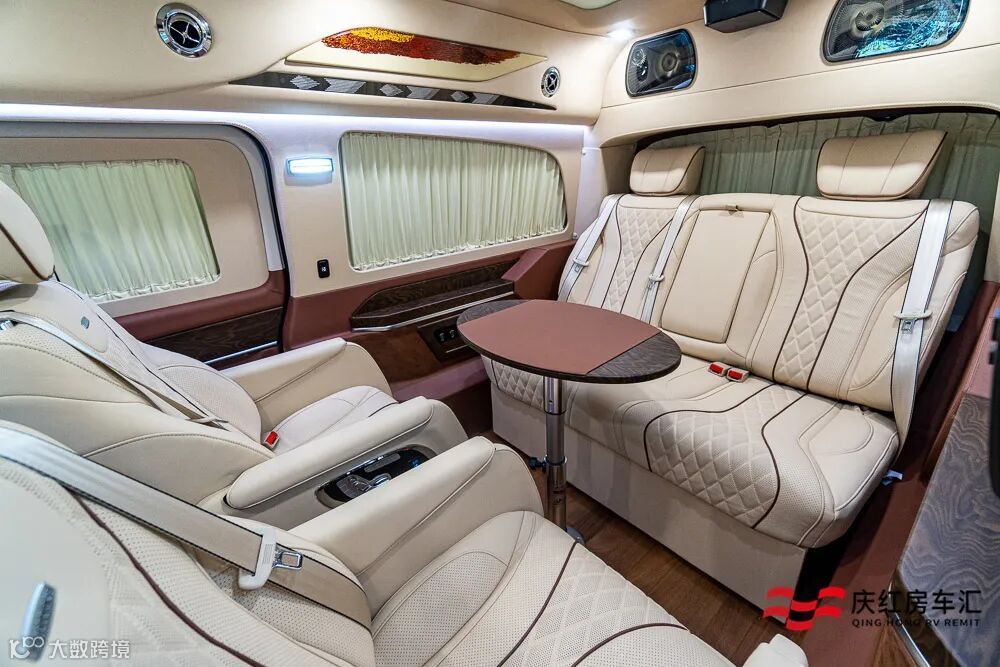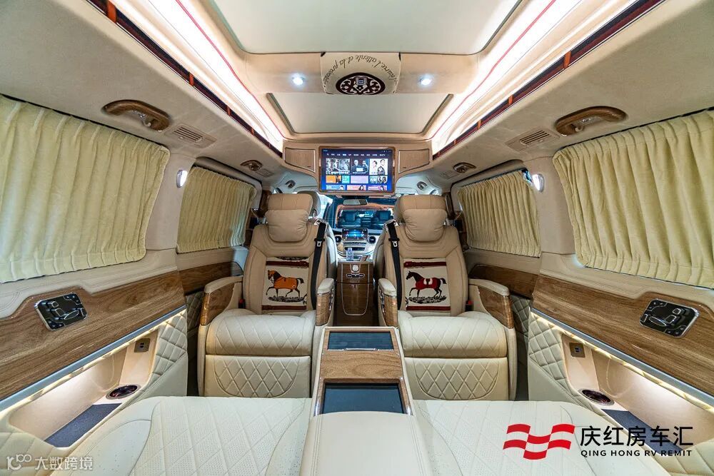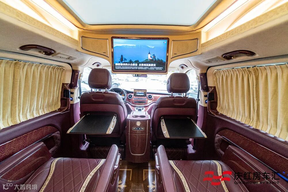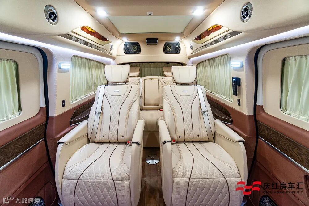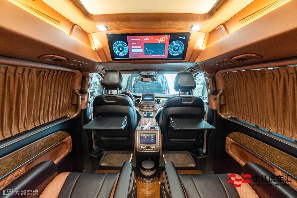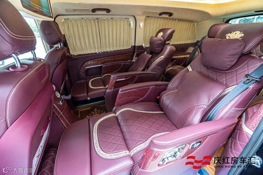 一袭紫红色搭配米色内饰,奢华高雅而尊贵。拥有着商务车中数一数二的超长腿托、贴合身体曲线的腰枕,以及堪比盲人按摩大师、力道十足的气动按摩,旅途中更加舒适与放松!大屏的高清液晶电视,悦耳的环绕音质,浪漫的舱内氛围,给旅途带来更多娱乐模式!