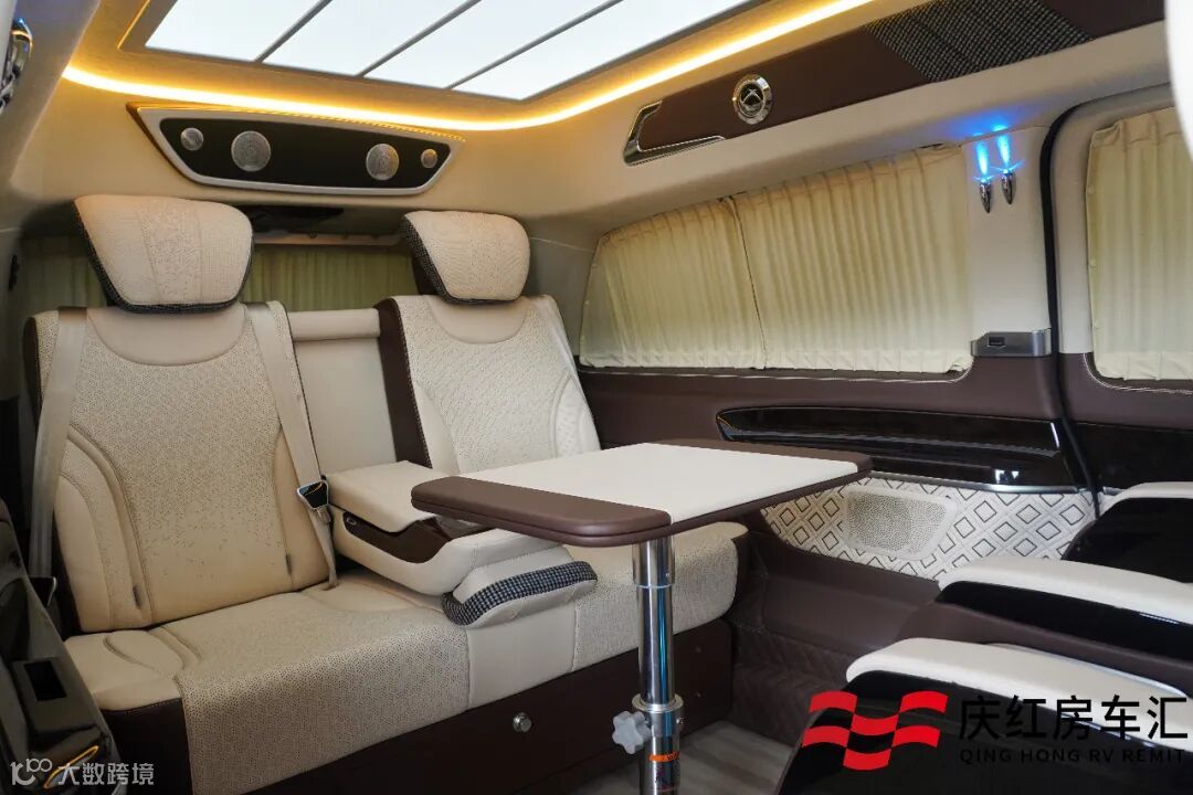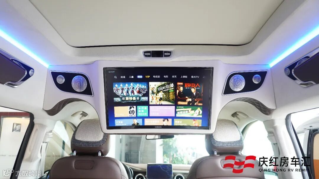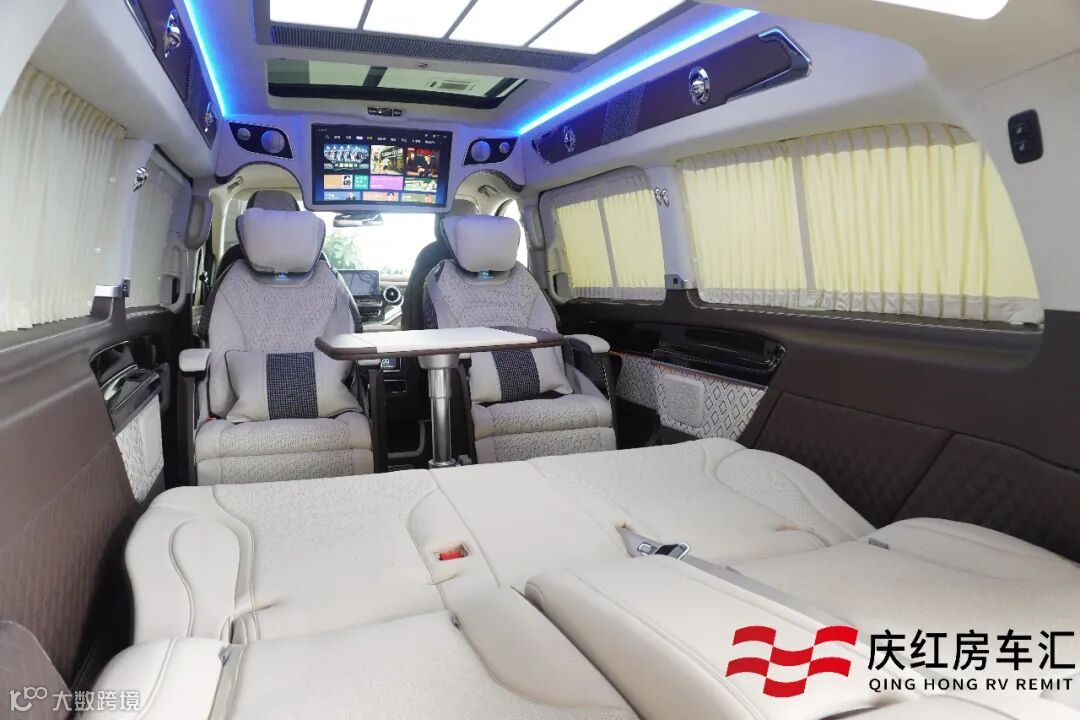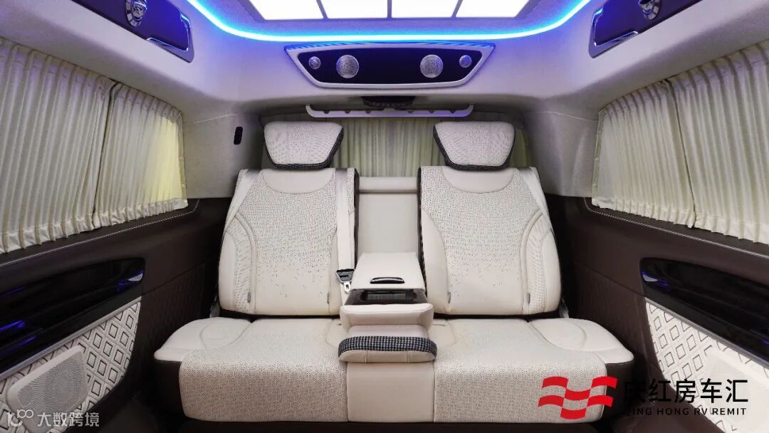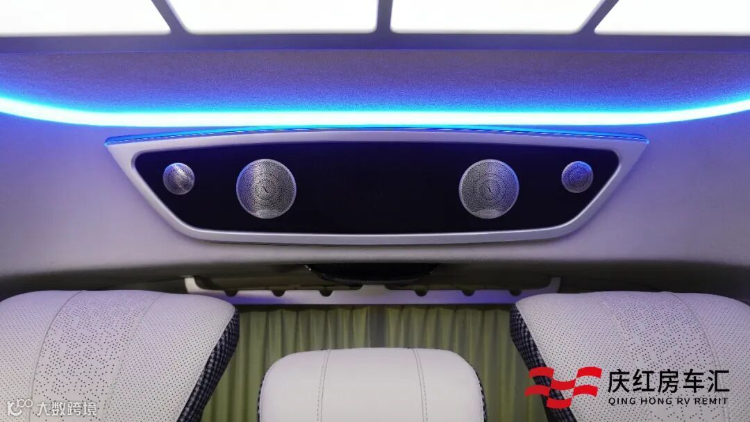 贵宾舱搭配了绒布私密窗帘,隔绝外界视线,加上整车隔音降噪处理,坐享一路的安静与舒适。大尺寸娱乐互联网电视,搭配柏林之声音响,遍布内舱每个角落的重低音喇叭,演绎完美声乐体验。
