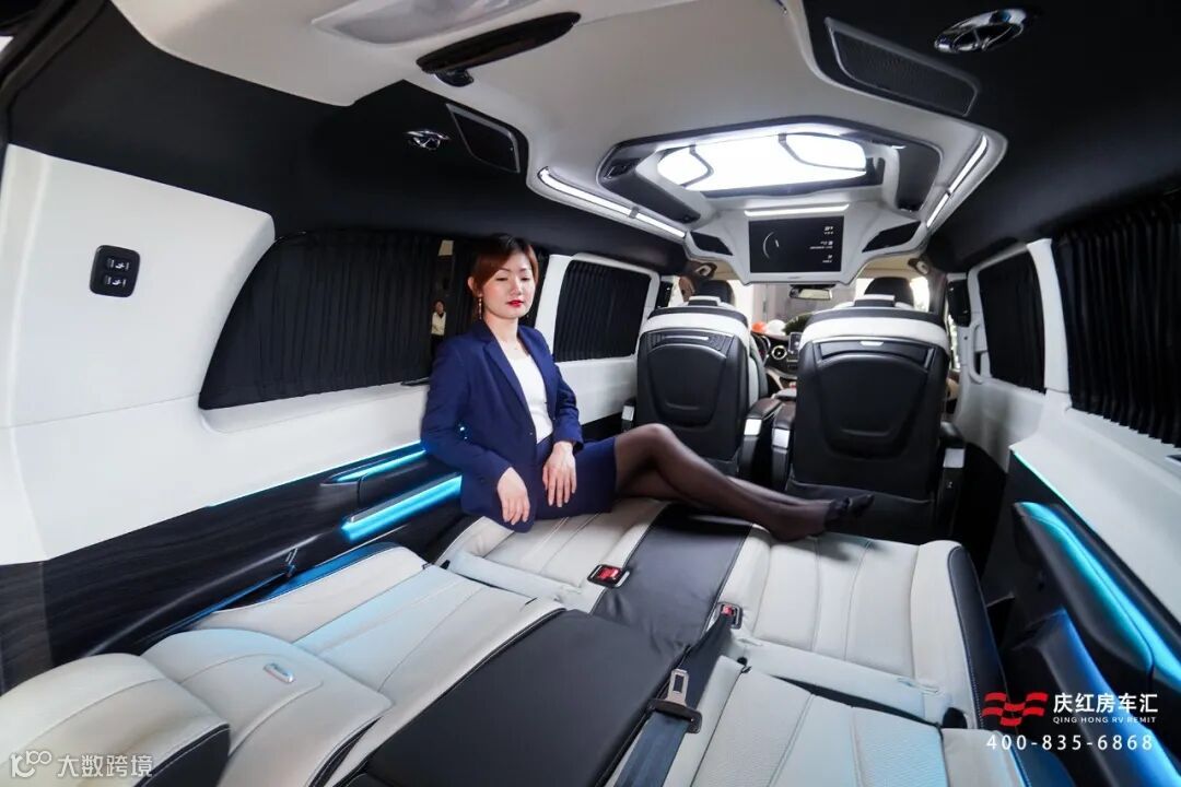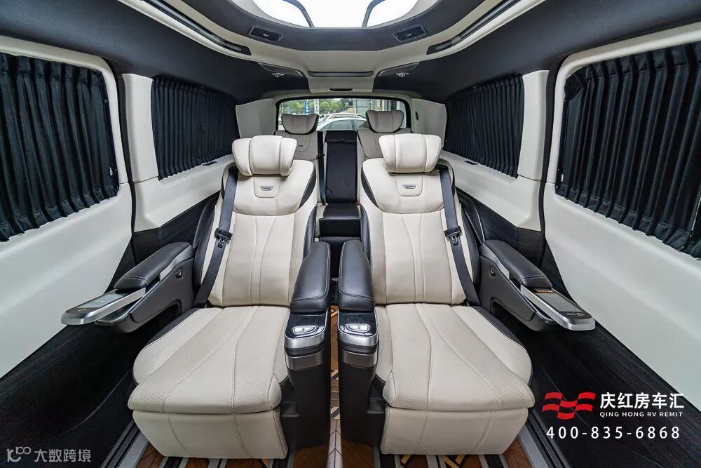 黑银色双拼奔驰V260L全新内舱,高品质材质定制的头等舱,与现代智能科技结合,展现豪华商务车的魅力。