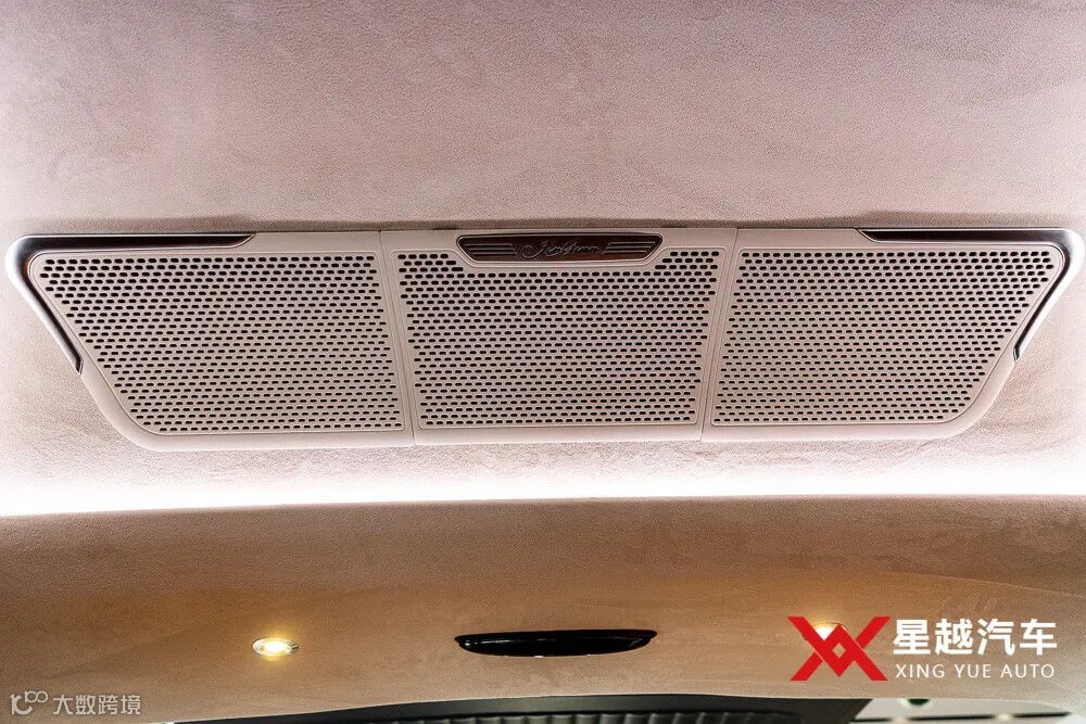 高级皮革+麂皮绒包覆内舱,分体式脚踏+羊锦绒地毯,真皮座椅多项按摩系统加持,豪华尊贵。