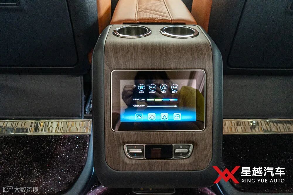 下方7寸触屏液晶屏, 主要控制车内的灯光电器等,上方还带有2个杯托设计。