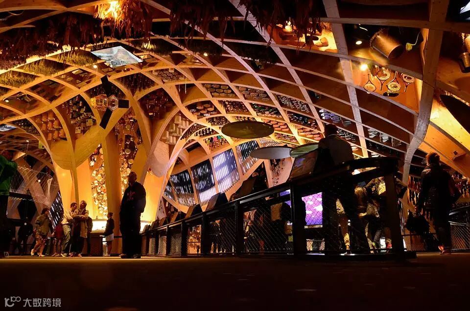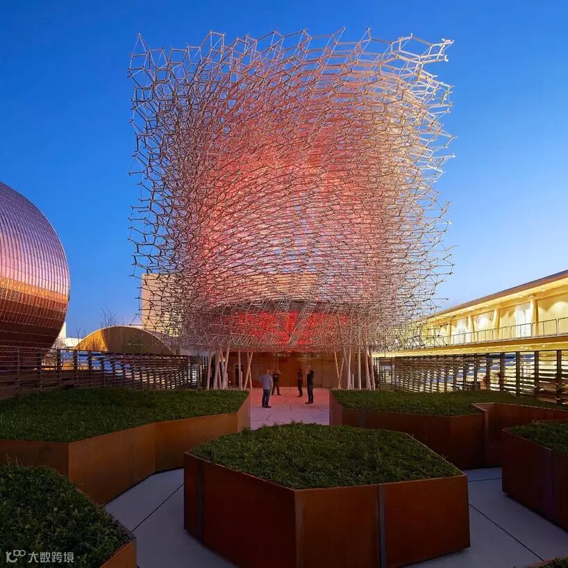 英国馆强调“蜜蜂困境的搏动的虚拟蜂巢”,为参观者营造一个“持久的英国景观”,进而实现一次“沉浸其中的感官体验”。