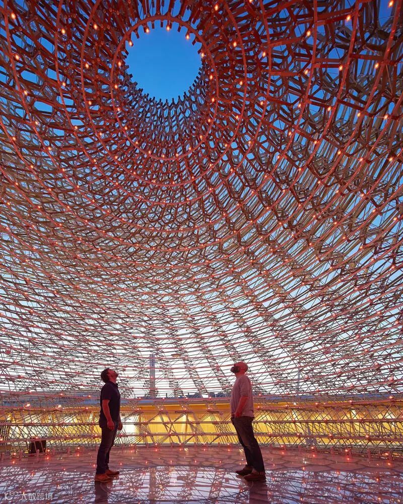 清华大学美术学院与StudioLink-Arc工作室以“天、地、人”为核心概念设计的方案,完美诠释了中国馆“希望的田野、生命的源泉”的主题。
