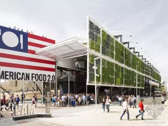 美国馆名为“美国食物2.0,联合供给地球”。设计构想是一个加长型谷仓,包含两层设施和宽敞的屋面露台。
