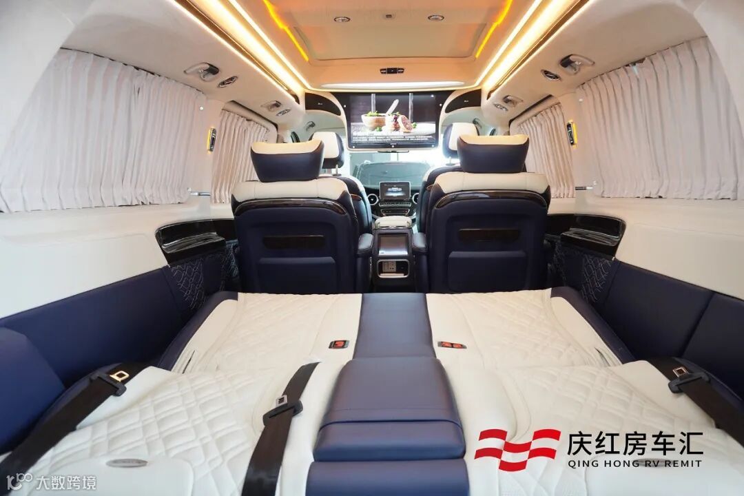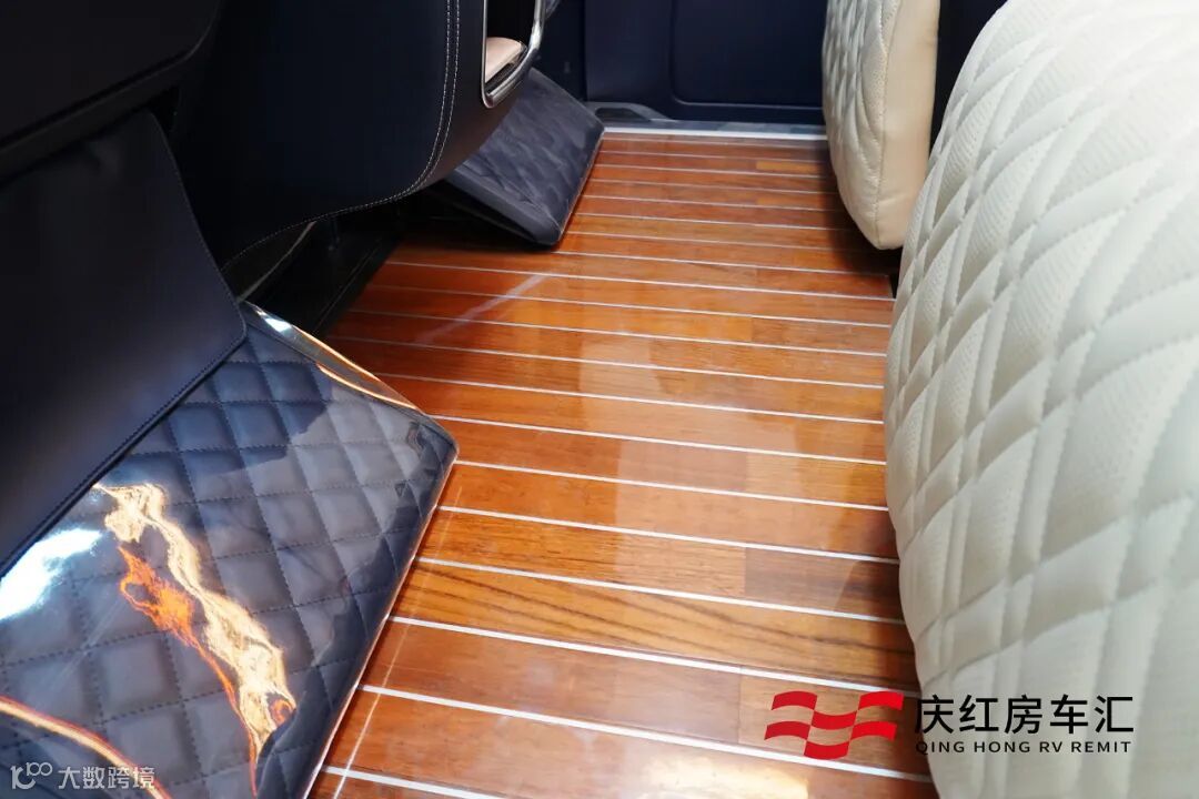 地板也采用高级柚木地板,顶棚氛围灯烘托下,豪华氛围到位,不管是商务接待还是一家人出游游玩,都非常能彰显尊贵感!