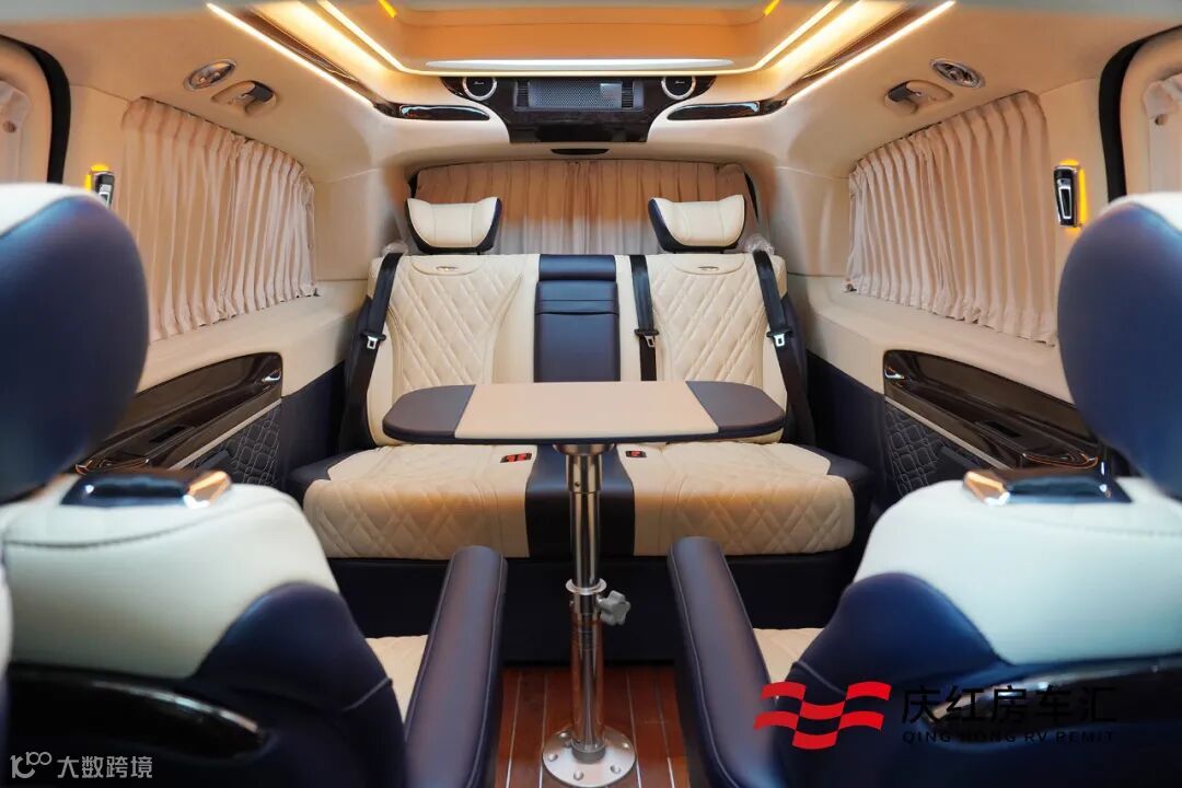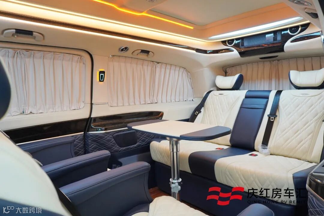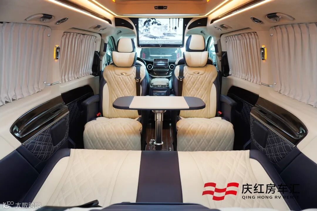 后舱采用全隐私窗帘设计,这时车内完全自成一个小天地,完全不惧外界纷繁的干扰,可以安心进行商务会谈、办公、娱乐等任何事情。