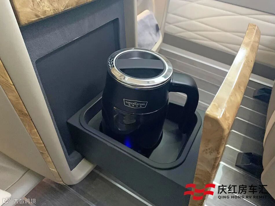 最特别的还属它半隔断的设计,上半部分与驾驶舱通透的格局,视野好,交流起来也很便利;下方隔断设计了大尺寸触控屏、隐藏式热水壶、以及杯托设计等,考虑到家庭出行的车主,可以煮热水,泡杯茶。