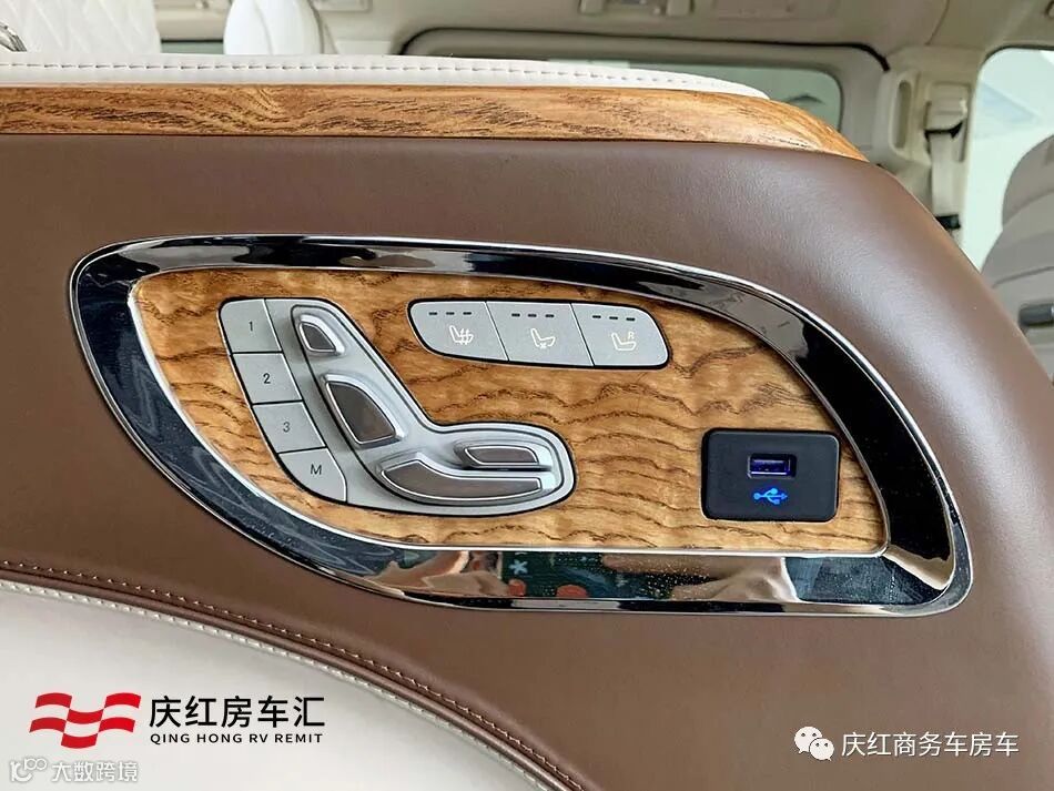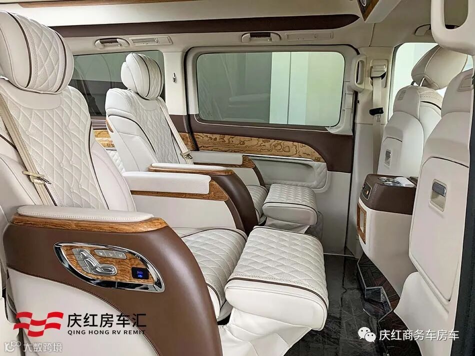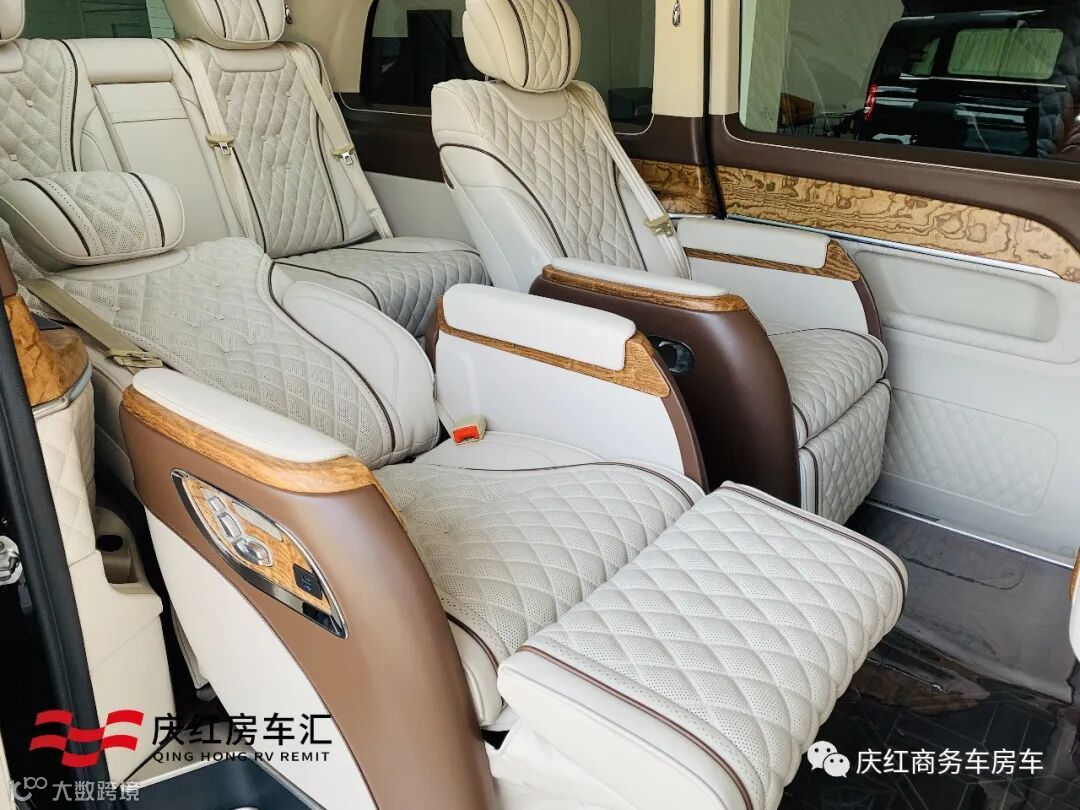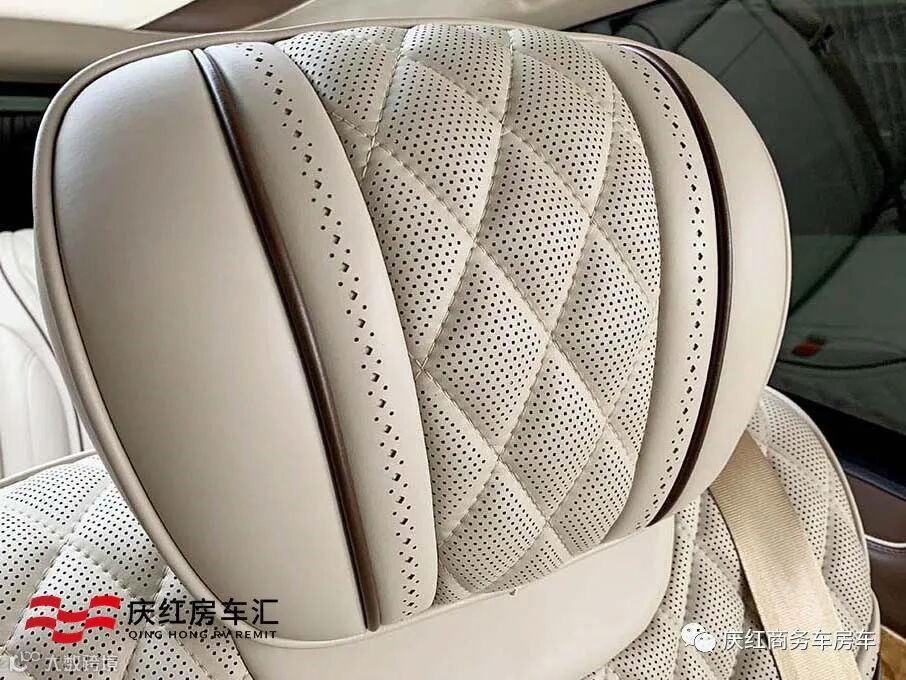 奔驰V级商务车中排升级为豪华航空座椅,高级打孔真皮触感细腻,菱形的缝线加上岑木的装饰,彰显尊贵与大气。