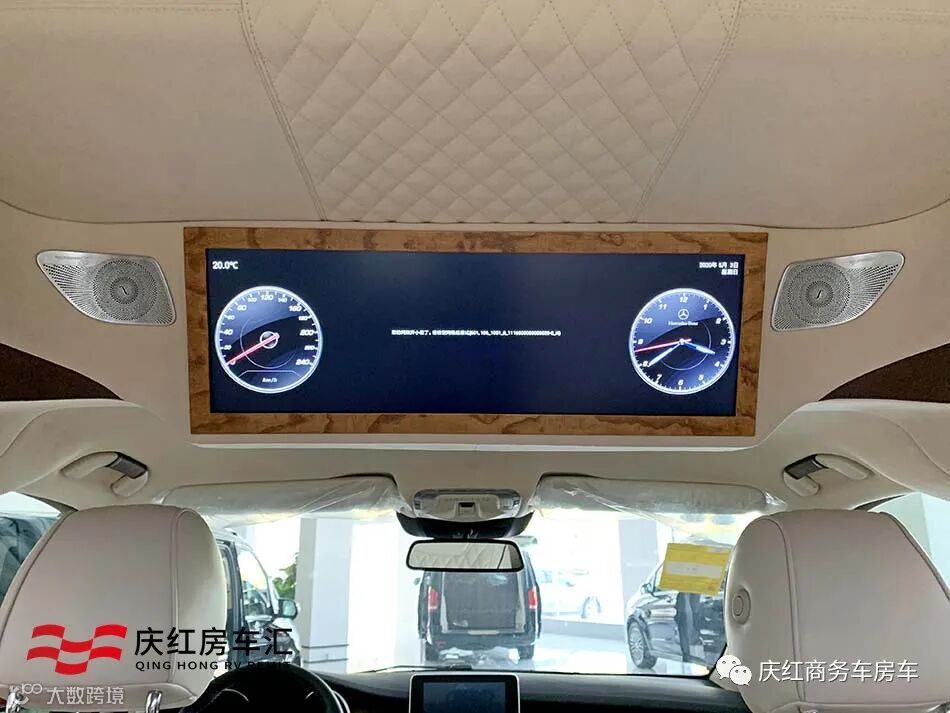 作为一款多用途的商务车,娱乐模式也不能少。驾驶舱上方安装了车载电视机,左右两边的是柏林之声音响,旅途中可以跟朋友看看综艺电视剧电影,岂不乐哉!