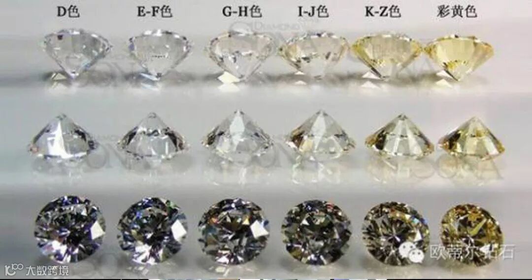 另一个品质标准就是色泽了,可分为从D—Z的大致5个等级。以D为最优,E、F为次,无色。后是G、H、I、J为次优等接近无色。再后等级的从K—Z颜色较深,火彩差,所以一般首饰品不使用。
