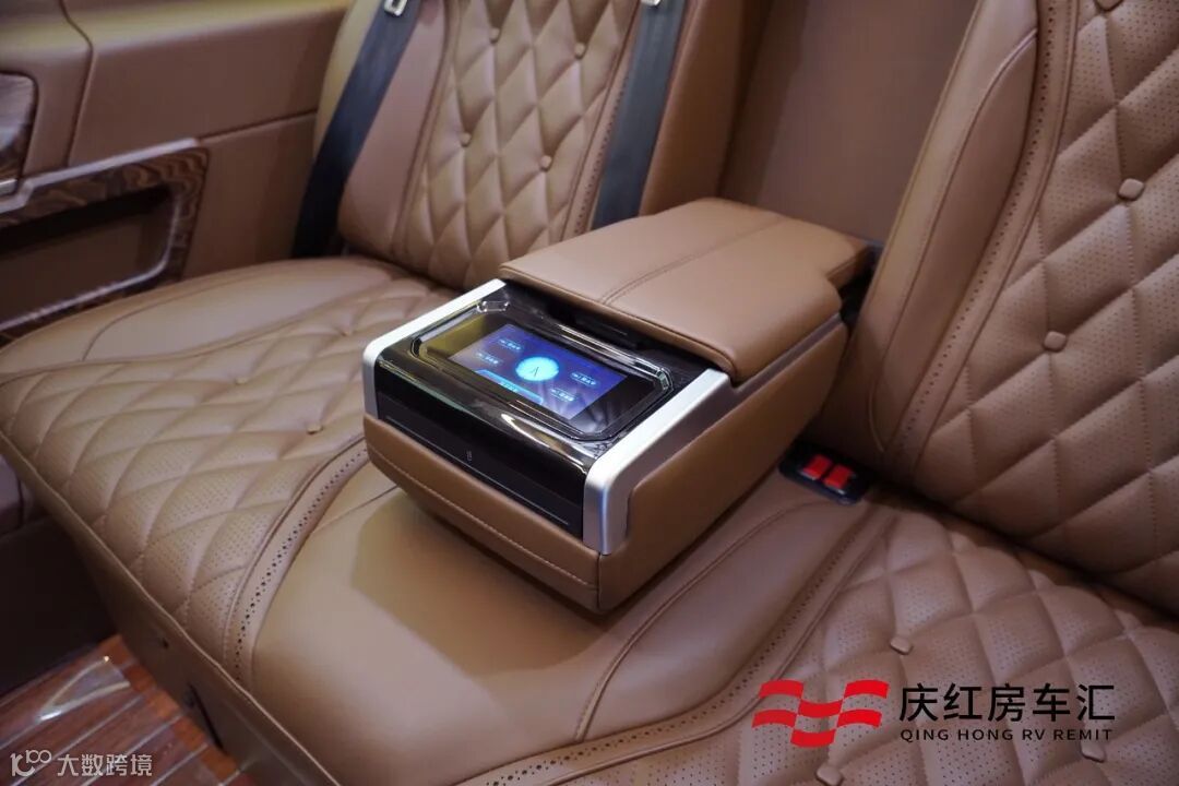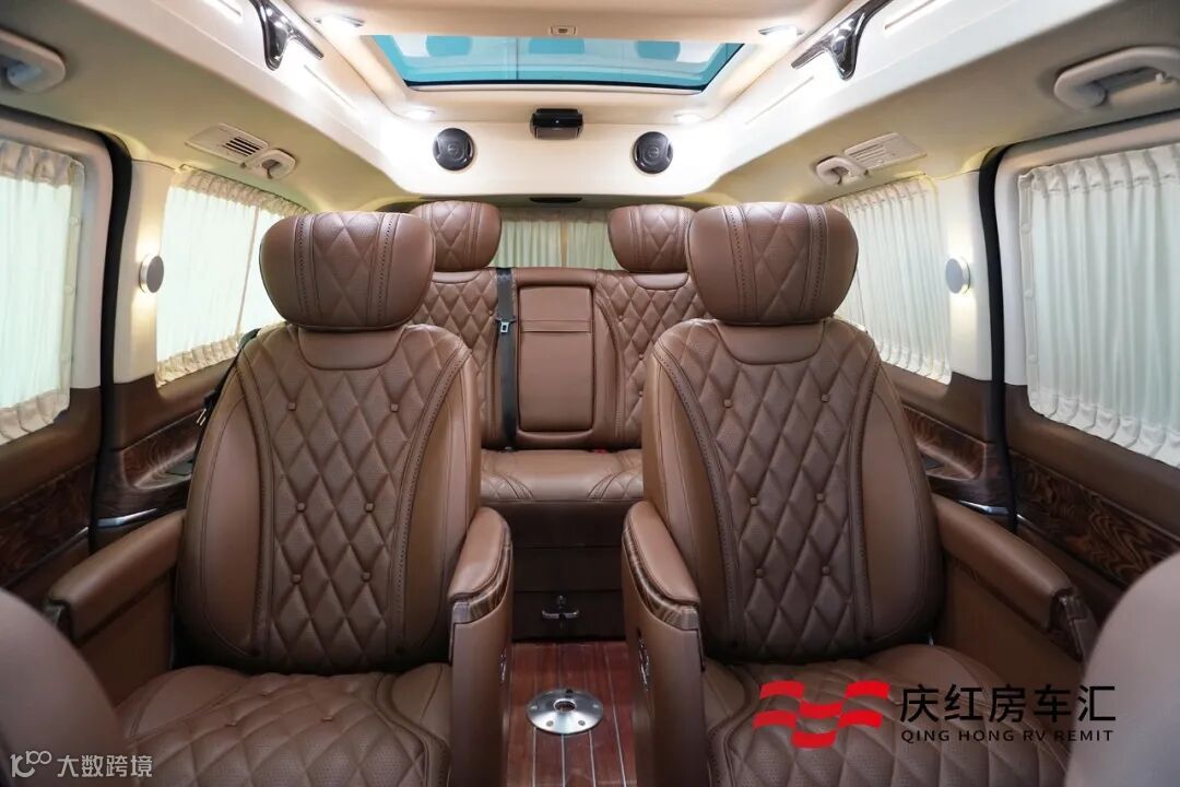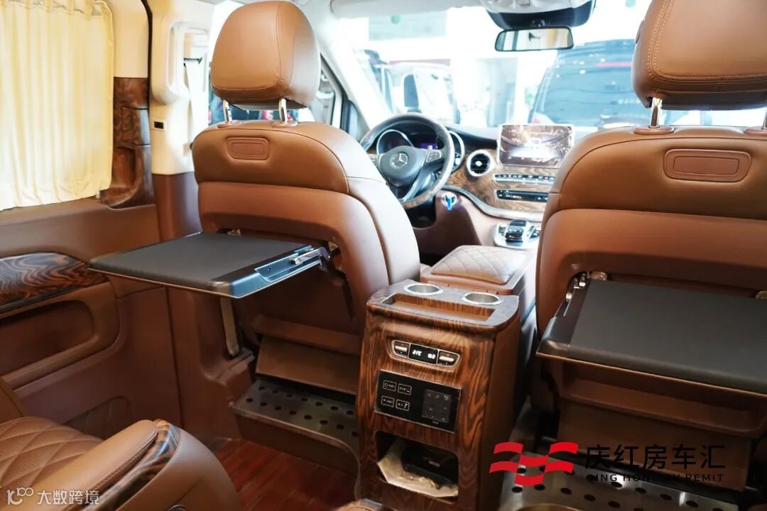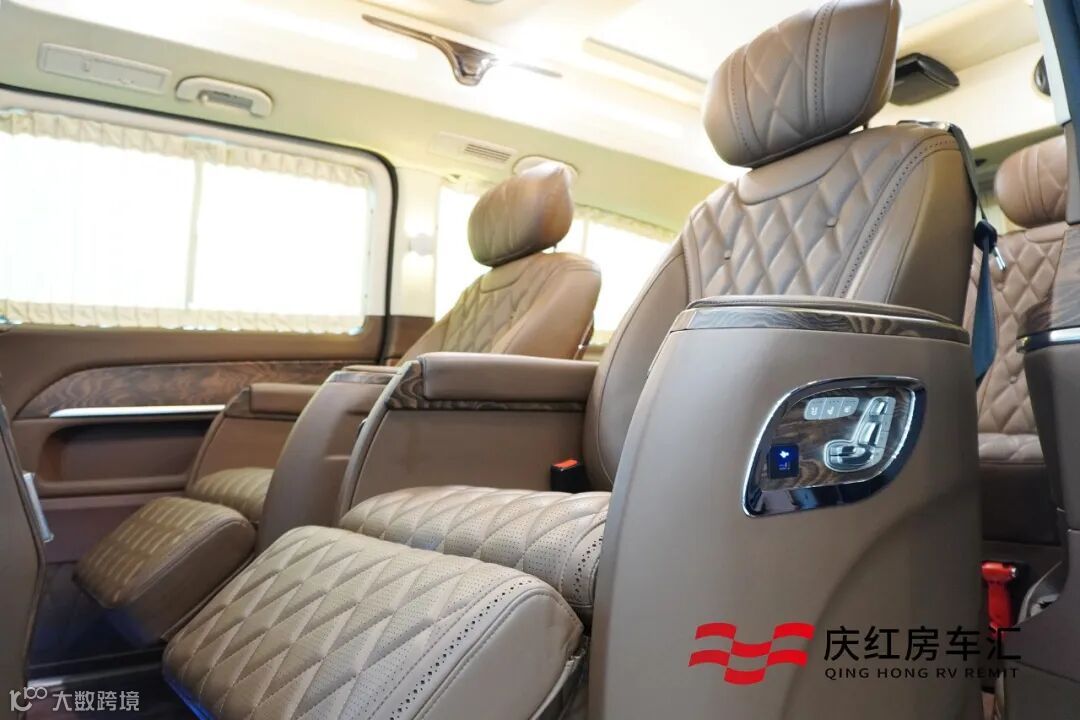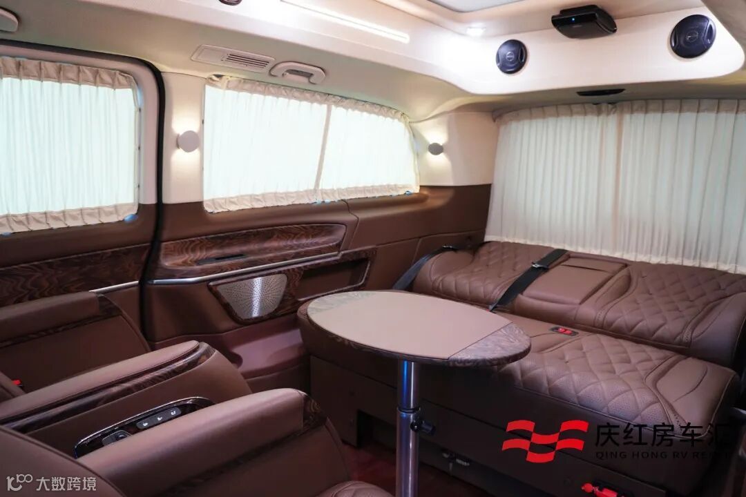 奔驰V级商务车内舱麂皮绒包覆车顶,光泽木地板,搭配舱内氛围灯,营造豪华明亮的车内环绕氛围。车舱内还配备高清液晶电视,阿尔派音响,功放带低音炮,可满足视频、音频多媒体播放,家庭出行休闲娱乐,心情愉悦。