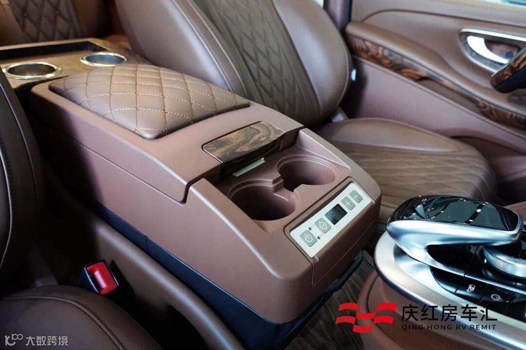 奔驰V级驾驶舱非常有档次,高光泽岑木纹装饰面板以及高级皮革缝线装饰中控台,全新的多功能方向盘岑木纹装饰带真皮包覆,座椅扶手处还设计了车载冰箱。上乘用料,匠心制作,彰显着奔驰V级的优雅与尊贵!