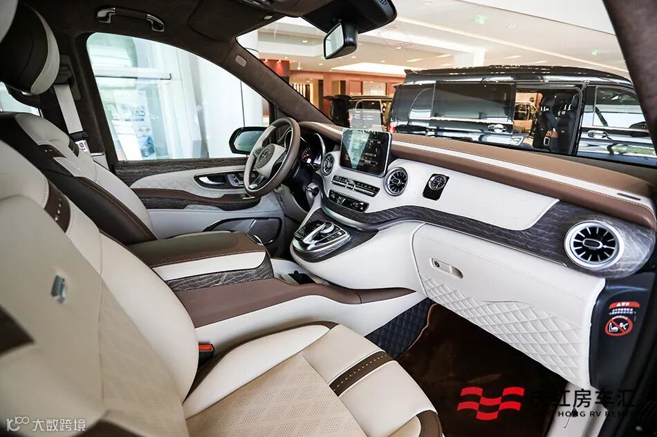 奔驰VS900L的驾驶舱全新的改装,用奢华来形容都不为过。双色拼接的仪表台防疲劳式设计,长途驾驶能有效的防止疲劳,提高驾车的安全性。