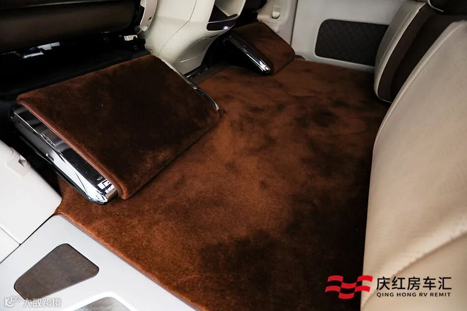 三排是连座的沙发床,带中央扶手设计,扶手上的屏幕同样可以控制座椅的前后一点、靠背调节,还可以平躺直接在车上睡觉。细腻的触感,柔软的填充物,所带来的舒适感真的完全媲美迈巴赫S级,不得不说真材实料就是舒适。