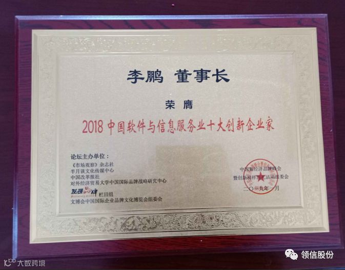 在此次创新榜样巡礼活动中,凭借着较高的创新能力、知识产权能力、创新驱动能力和四新能力,领信股份获得了“2018中国软件与信息服务业十大创新企业”、董事长李鹏先生获评“2018中国软件与信息服务业十大创新企业家”,展现新时代品牌实力。