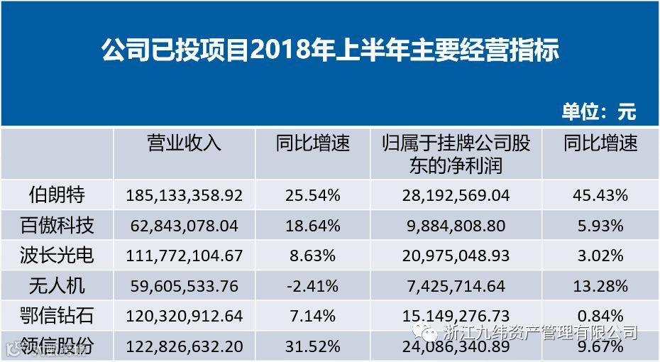 从上半年的业绩来看,九纬资产所投项目公司的净利润都有不同程度的增长,具体如下: