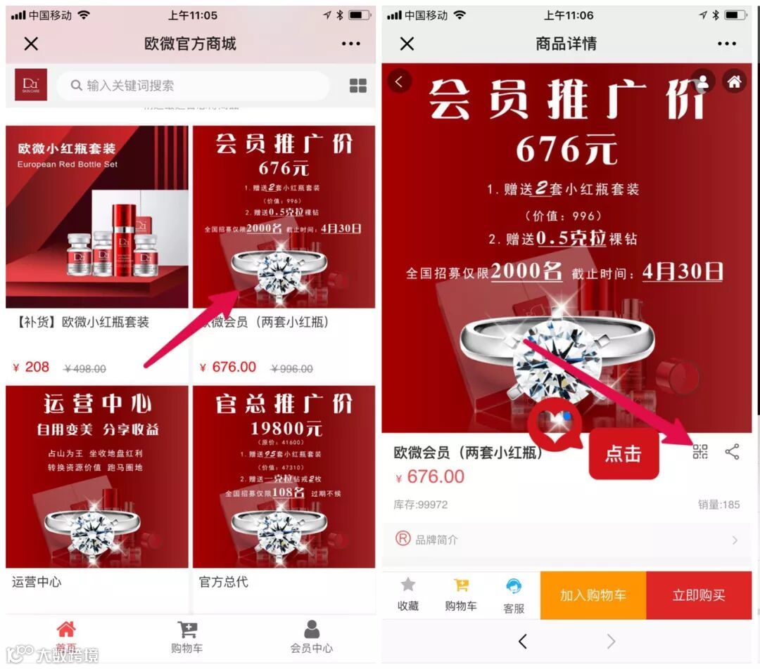 云库存:注册高级别代理赠送的欧微小红瓶将会存放到云库存里面,随时都可以提货,不需要再次购买。