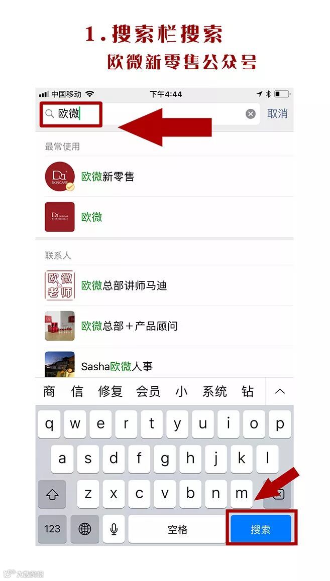 搜索欧微公众号服务号“欧微新零售”点击进入