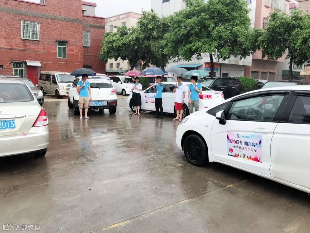 ▲佛山市三水区域合伙人冒着大雨在定点等候考生乘车!