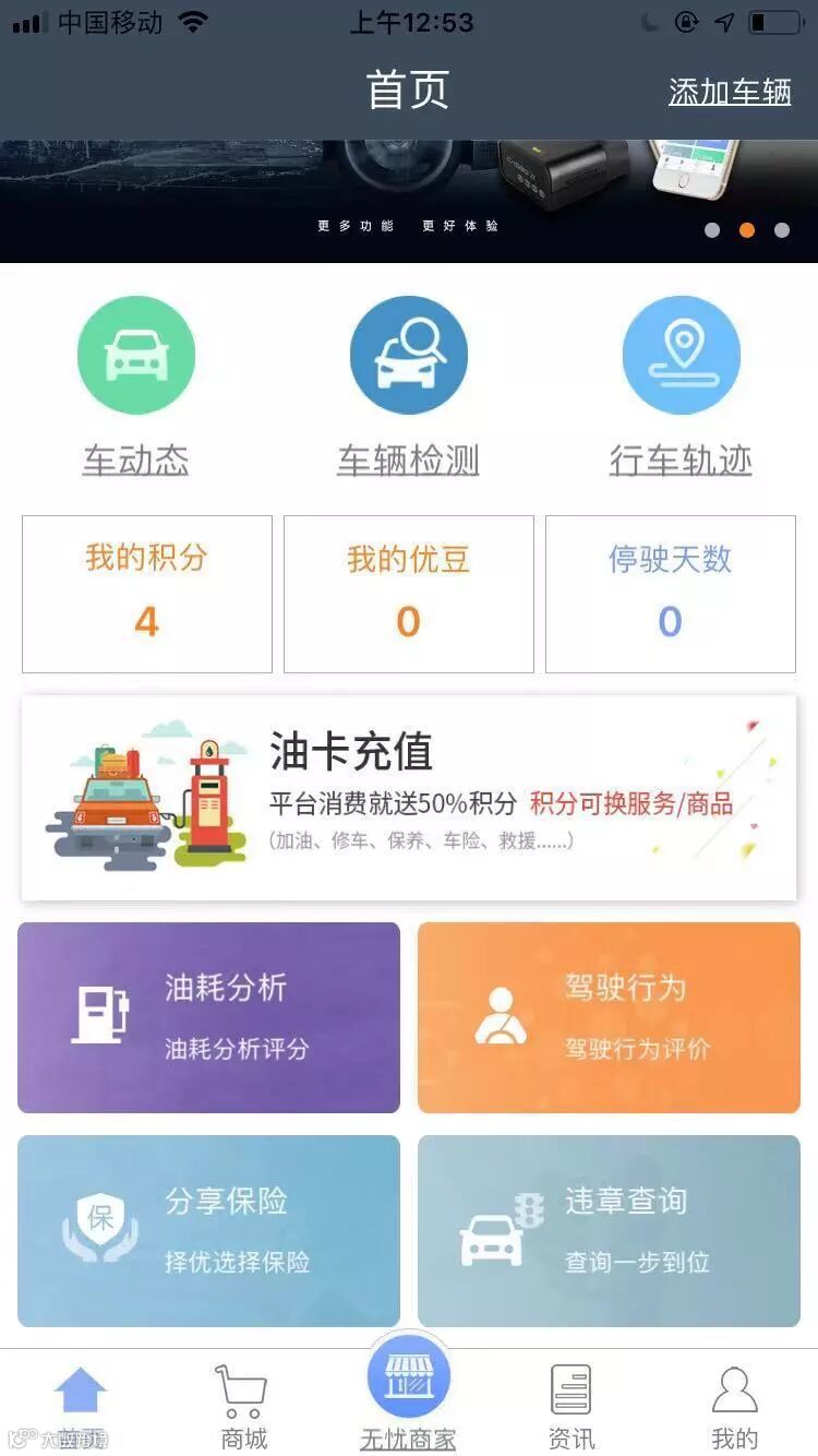 商城积分也是平台的一大亮点:购买OBD服务包立即获得1600积分;而在商城或联盟商家处购买任意产品也可获得100%积分返利(除充值油卡获50%积分),积分可抵现,购买更多商城产品,循环福利,畅爽不停!