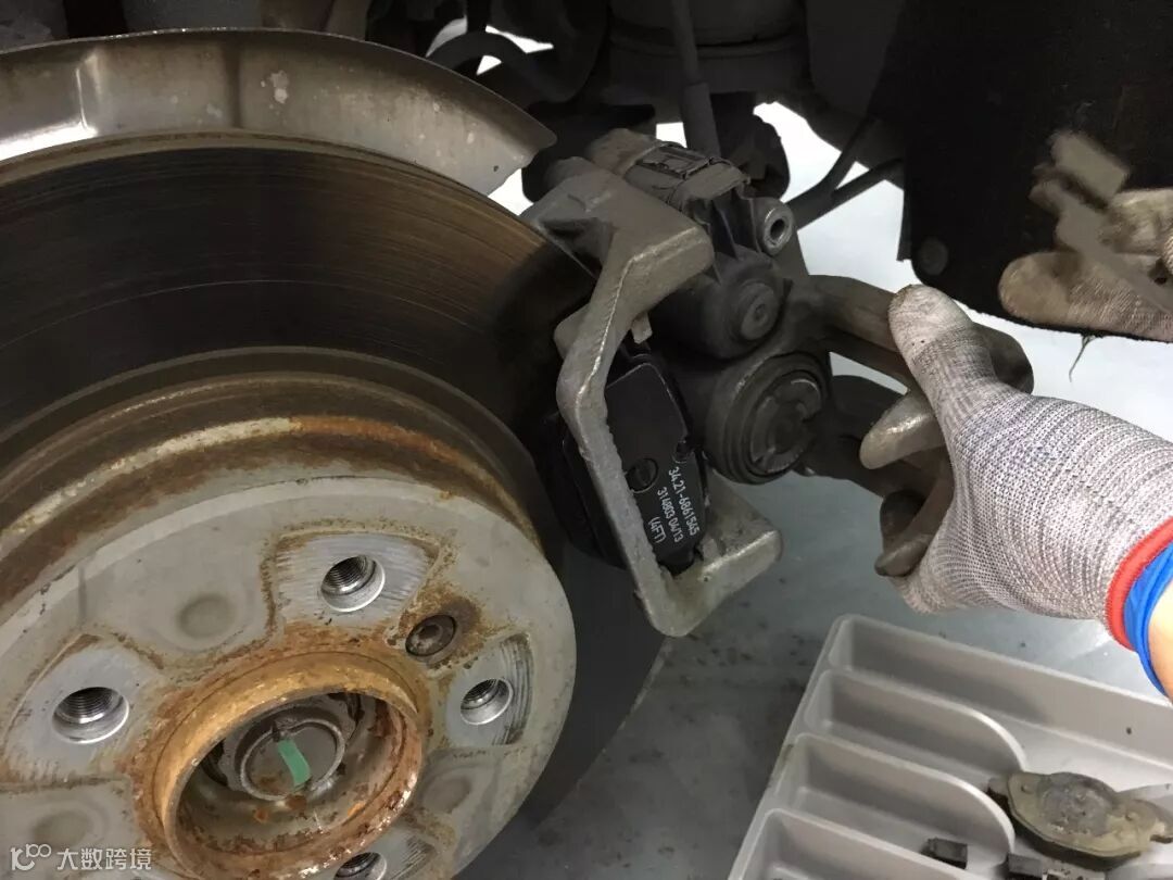 不过,宝马是带感应线的,一旦达到了磨损极限,仪表会报警提示更换刹车片,我们根据这个报警来更换就挺好的,省了不少麻烦。