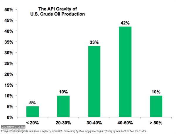 美国原油出口上涨源于炼油厂的不匹配:增加轻油供应。