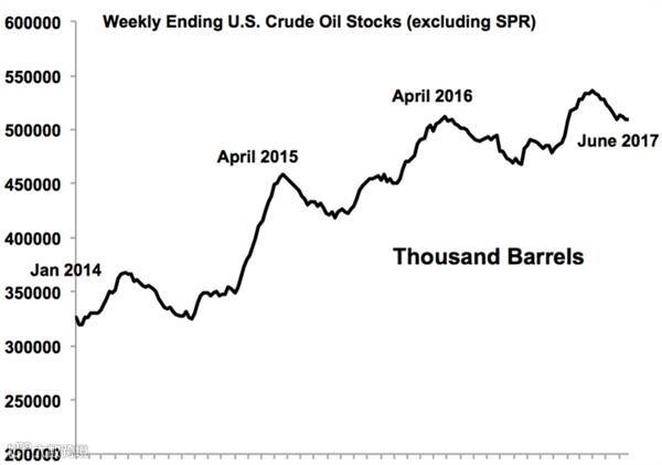 油价下滑,美国原油库存过高,到2017年3月底达到5.35亿桶的高位,并持续向全球最大石油市场供过于求的交易商发出信号。对于市场来说,意义非凡:“油价飙升2%,因为交易商认定油价将进一步下跌,市场预期美国原油库存将下滑。”