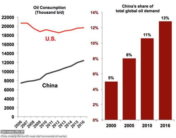 中国的石油未来是无限的:如果中国人像美国人一样消耗石油,世界将每天需要额外的7500万桶石油,那么今天整个全球石油市场的扩张将近80%——比两个石油输出国组织供应新需求还要多。