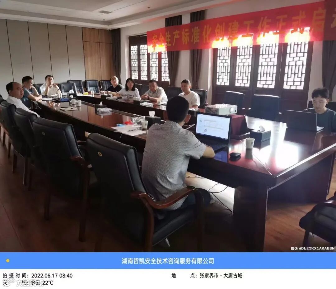 2022年6月,由湖南哲凯提供技术服务的张家界大庸古城启动企业安全生产标准化创建工作暨全员培训会议。