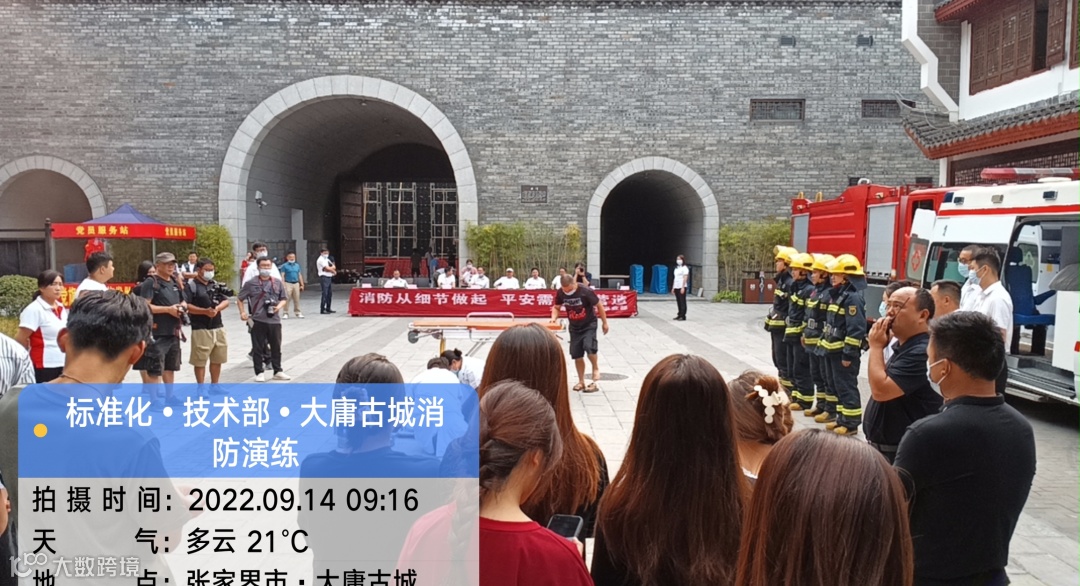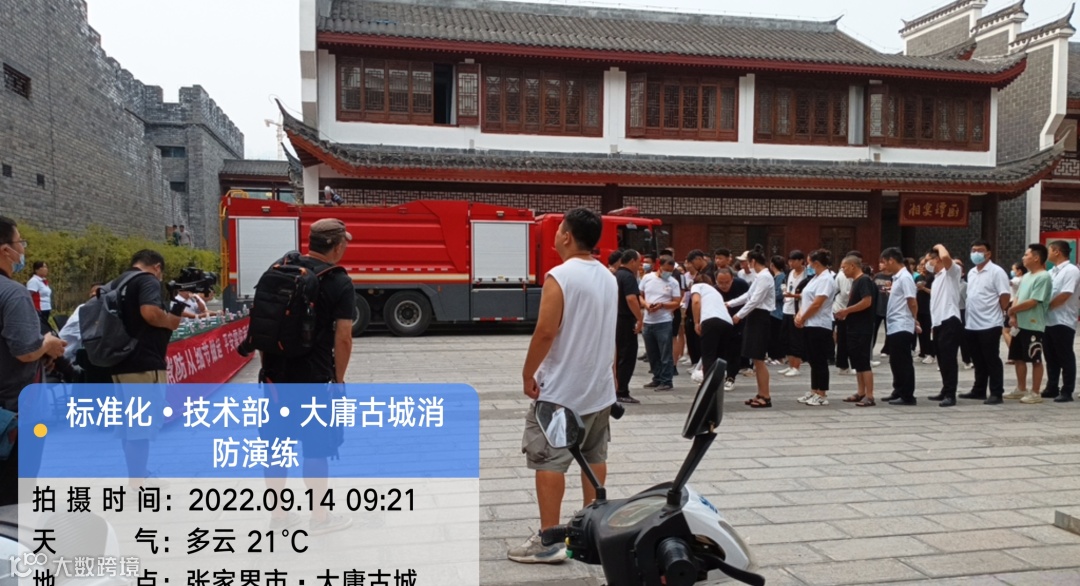 2022年9月14日,我司观摩张家界大庸古城《遇见大庸》剧场举行的消防演练活动。