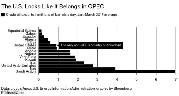 据彭博社报道,美国2017年首三个月的出口量超过了石油输出国组织14个成员国中的5个。OPEC的数字来自劳埃德的Apex,后者将其数据提供给美国能源信息管理局(EIA)。