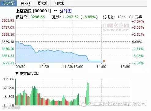 截至收盘,沪指报3296.66点,下跌242.52点,跌幅6.85%;深成指报11630.94点,下跌1033.9点,跌幅8.16%;中小板指报7705.72点,下跌688.11点,跌幅8.20%;创业板指报2491.27点,下跌222.78点,跌幅8.21%。