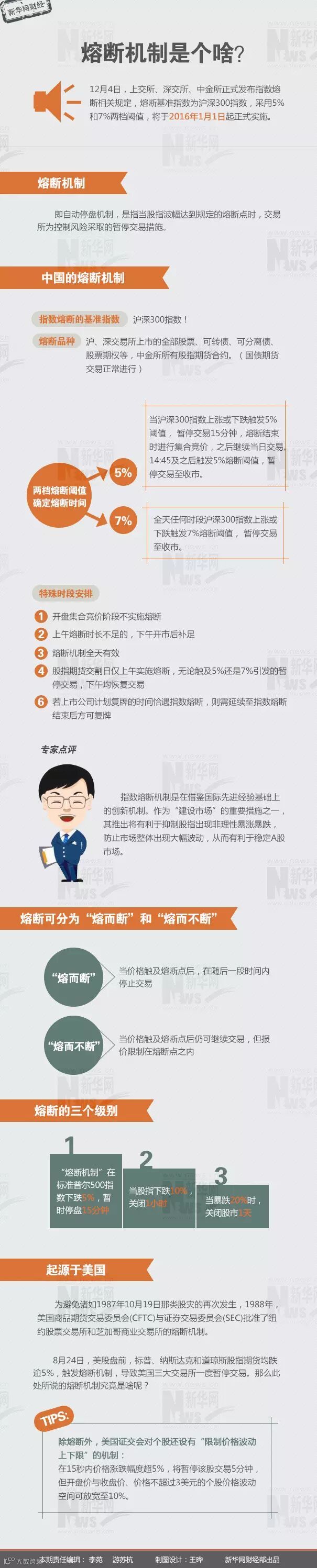 此前,证监会新闻发言人邓舸表示,引入熔断机制有助于市场稳定,维护市场秩序。邓舸说,境内资本市场投资者以中小散户为主,市场波动较大,引入指数熔断机制,为市场在大幅波动时提供“冷静期”,有助于市场稳定,维护市场秩序,保护投资者权益,促进资本市场的长期稳定健康发展。