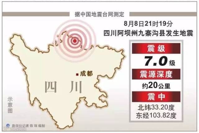 2017年8月8日21时19分53秒,四川省阿坝州九寨沟县(东经103.8°,北纬33.2°)发生7.0级地震。