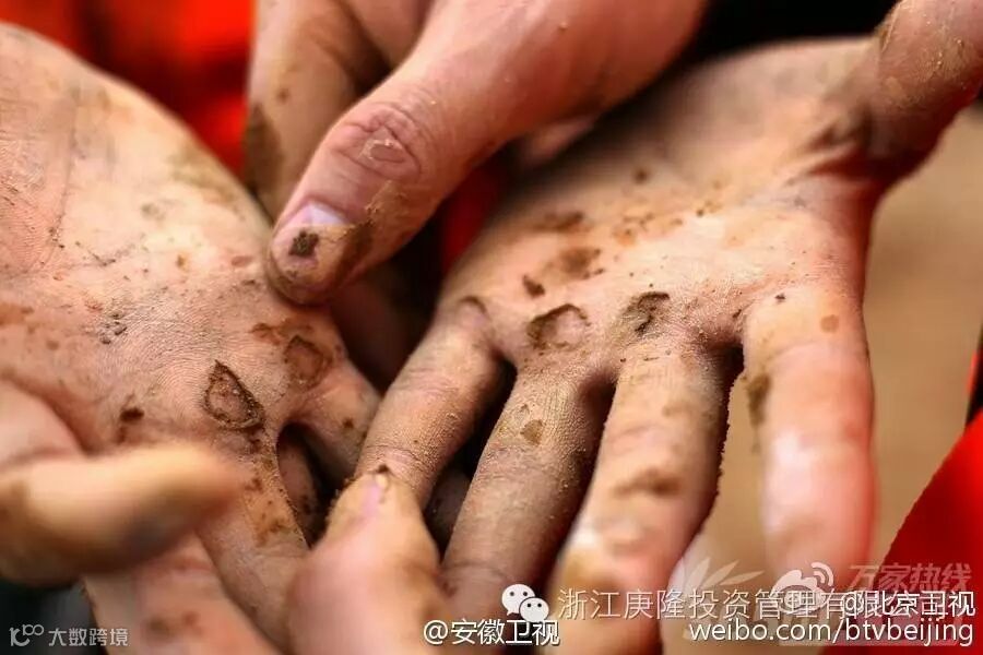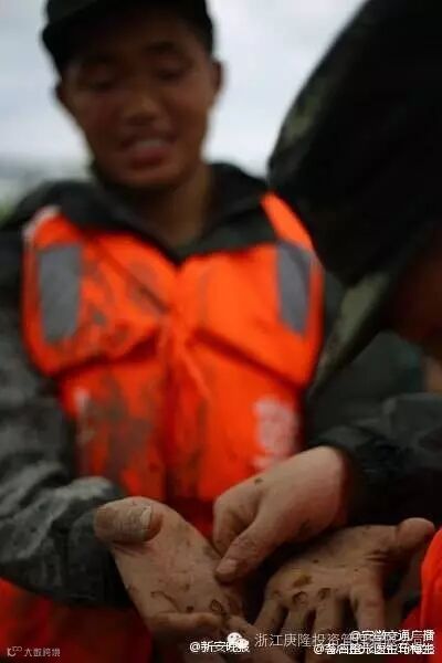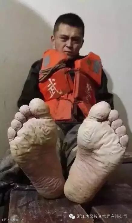 连续30多个小时在雨水泥泞中浸泡,双脚已失去肉色,褶皱纵横的大脚刷屏朋友圈。