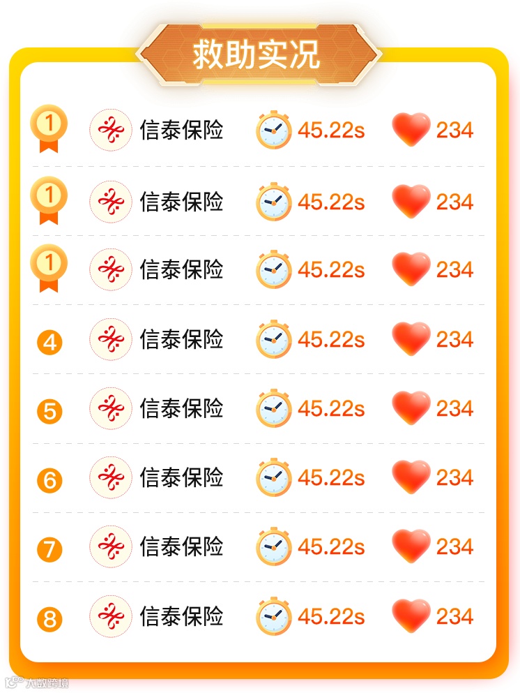 每完成一次挑战即可捐赠50个爱心值,活动结束后信泰保险将根据爱心值总数为应急救护驿站项目进行捐赠!